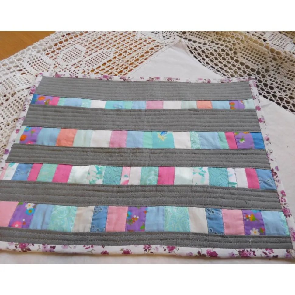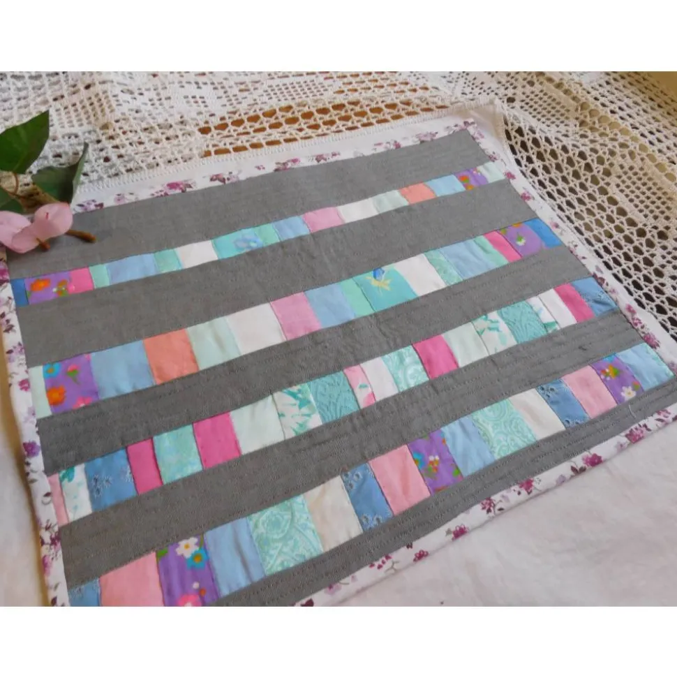Diese Platzmatte habe ich selbst in Patchworktechnik genäht und gequiltet.