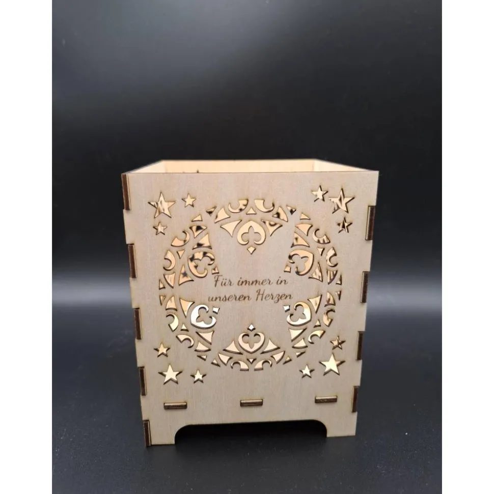 Mit diesem gravierten Holzlicht kannst Du zu Hause einen schönen Platz für Deine Erinnerung schaffen. So habt ihr Eurer Sternenkind immer bei Euch und es zeigt, dass sie für immer zu Euerm Leben dazu gehört. Unsere Kleinen leben in unseren Herzen weiter.