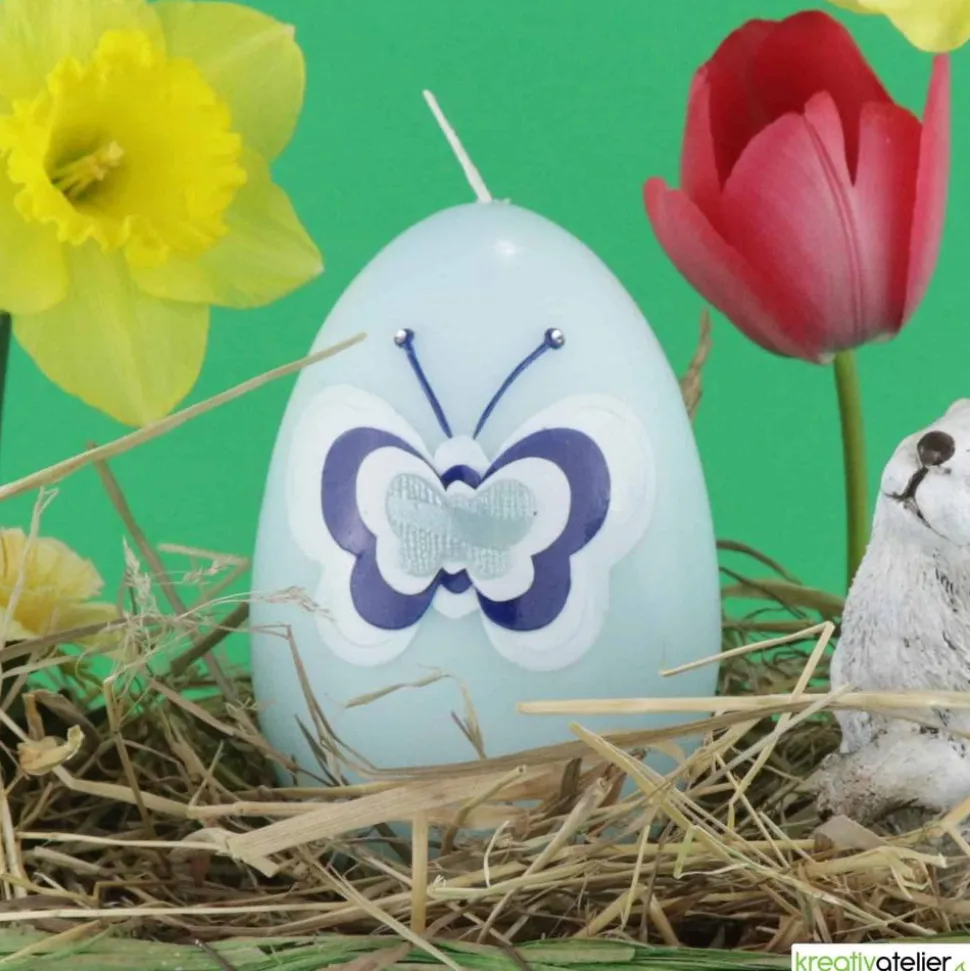 Diese Ostereikerze eignet sich hervorragend als Tischdeko für Ihre Osterfeierlichkeiten oder als besonderes Ostergeschenk für Ihre Lieben. Sie ist ein Symbol für das neue Leben und die Freude, die uns das Osterfest schenkt. Die zarte hellblaue Farbe der Kerze verleiht ihr eine ruhige und friedliche Ausstrahlung und lässt den Schmetterling in blau-weißem Verzierwachs besonders schön zur Geltung kommen.