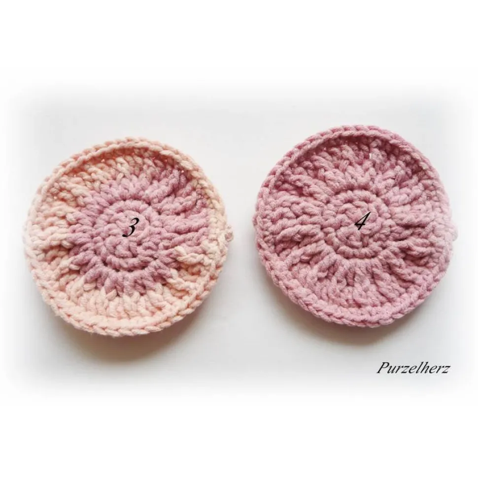 Da ich für diese Pads ein Farbverlaufgarn gewählt habe, kann ich sie leider in dieser Farbkombi nicht nachhäkelt. Also, wenn weg, dann weg!