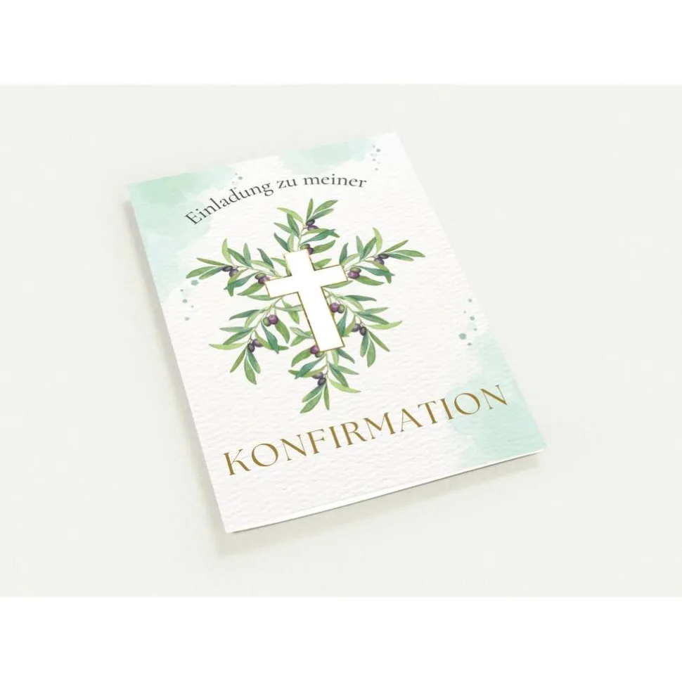 Grünes Konfirmationseinladungskarten-Set 10er-Pack, Konfirmationskarte mit Olivenzweigen, Einladung Konfirmation