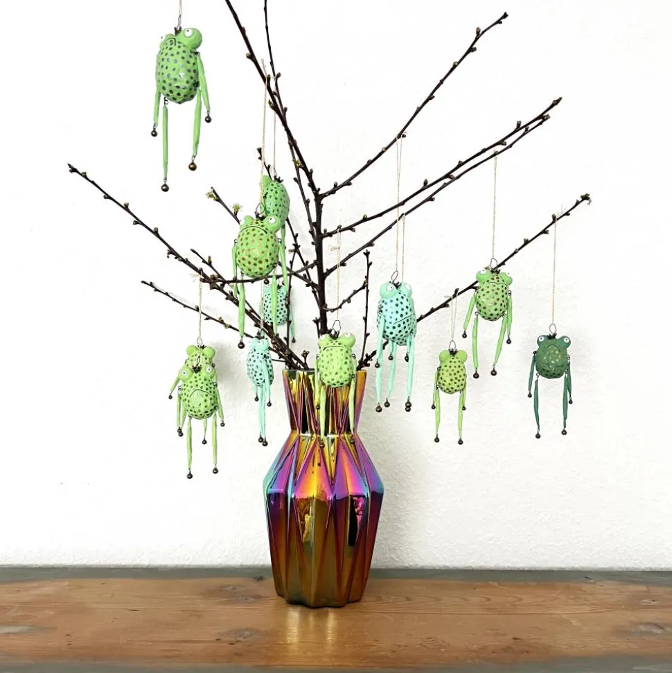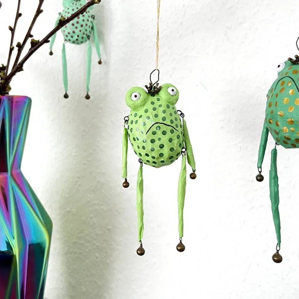 Dieses entzückende Froschglöckchen habe ich aus Papier und Draht hergestellt, bemalt und mit Glöckchen und Bronzekrone dekoriert. Es macht sich hervorragend im Osterstrauß, am Türkranz oder als kleines Geschenk.