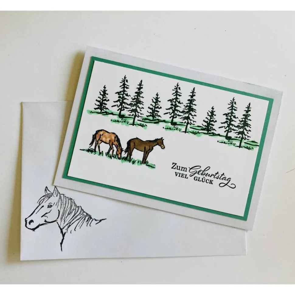Dann ist diese handgearbeitete, liebevoll gestaltete Grußkarte für Pferdefreunde vielleicht etwas für Sie.