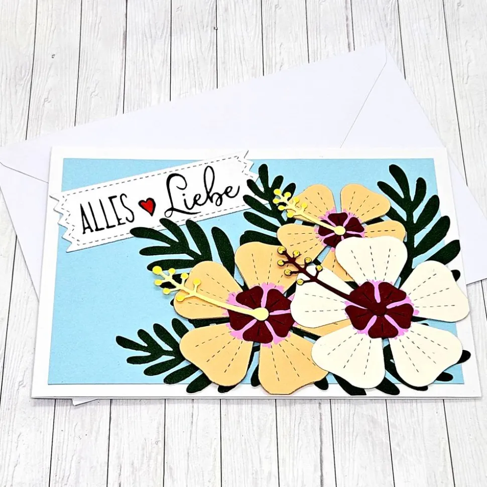 Erlebe sommerliches Flair mit der liebevoll handgefertigten Grußkarte Hibiskus!