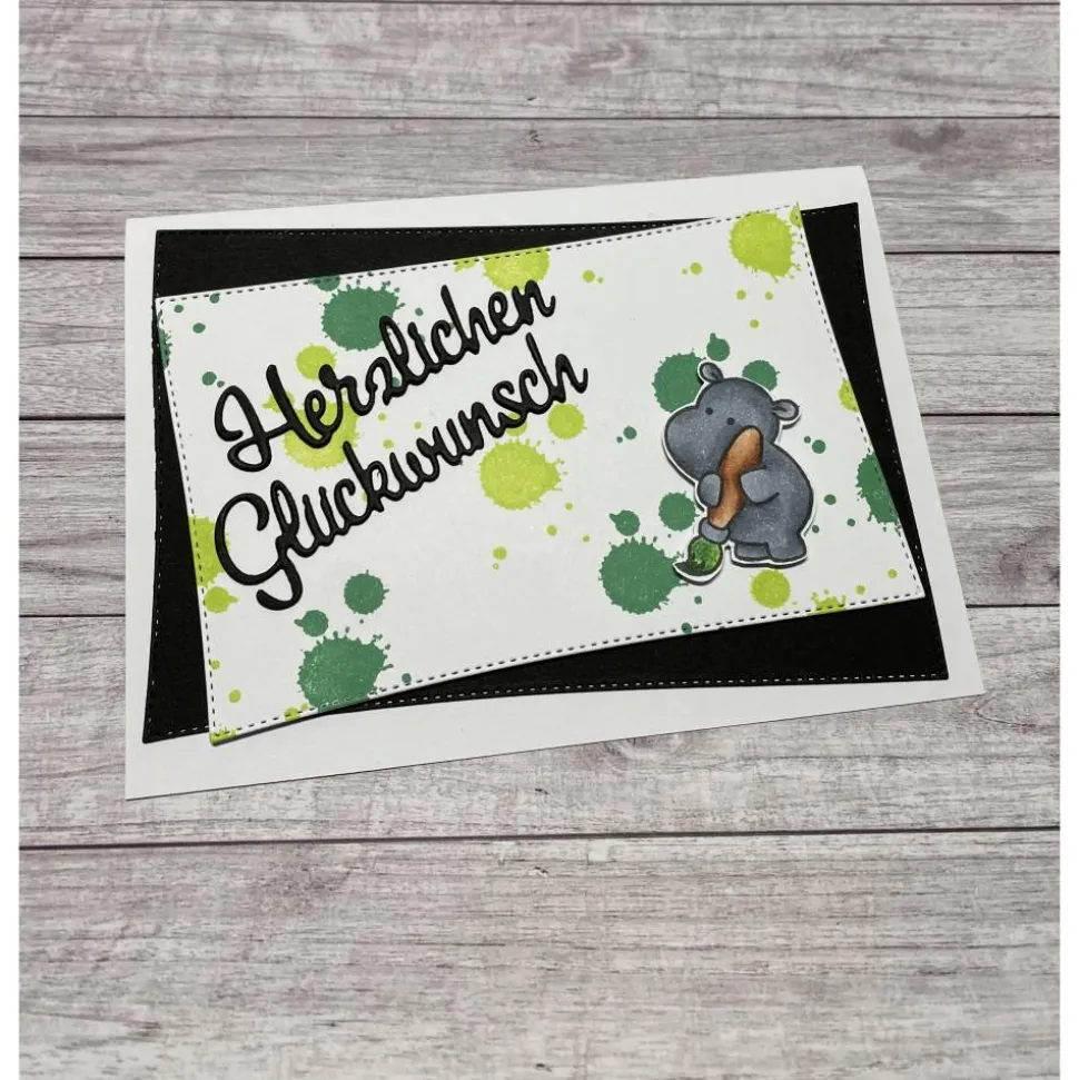 Grußkarten / Glückwunschkarten zum Geburtstag oder anderen Anlässen, Nilpferd sagt „Herzlichen Glückwunsch“, Handarbeit