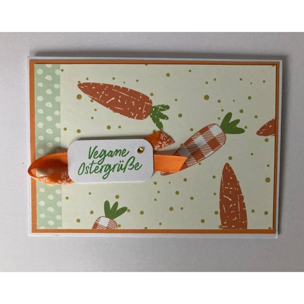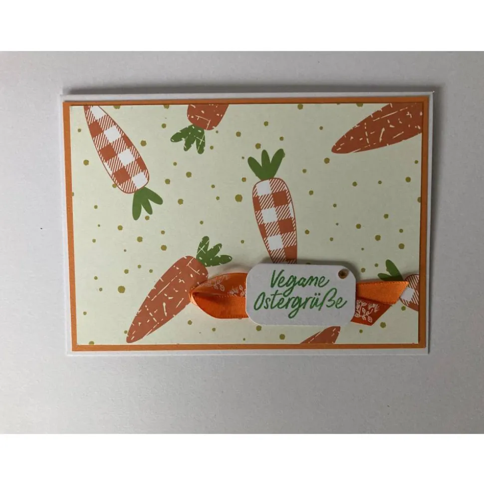Die Karten bestehen aus einer weißen Klappkarte und Designpapier mit Möhren.