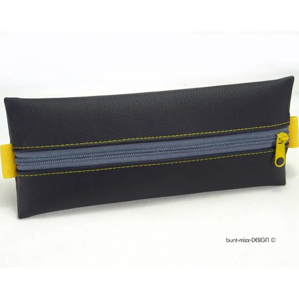 Aus Kunstleder SCHWARZ, stylisch kombiniert mit Reißverschluß in GRAU und Gummiband in GELB.