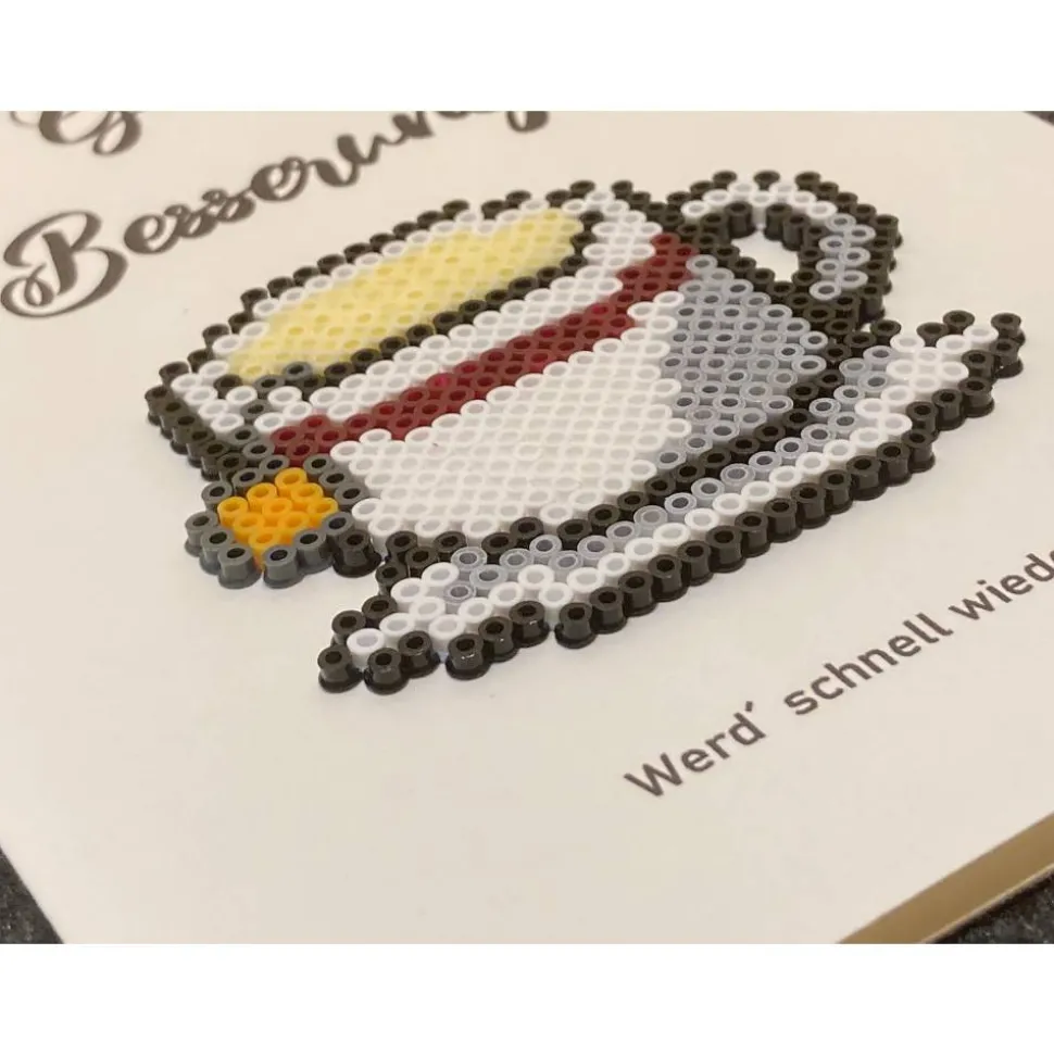 Jedes meiner Bügelperlen-Werke entsteht mit Pinzette, Heizpresse und ganz viel Liebe zum Detail. Das macht diese Karte zu etwas ganz Besonderem. Da es sich um eine handgefertigte Karte handelt, sind kleine Abweichungen möglich. Eine exakte Kopie der Karten auf dem Foto ist nicht möglich. Die Unterschiede sind in der Regel aber nicht so groß, dass sie Euch auffallen werden (außer ihr nehmt es auf den letzten Milimeter genau 😉 ) – dies nur als Hinweis. 🙂