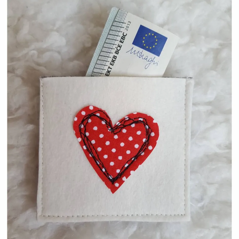 Wie wäre es mit dieser mini kleinen Filzhüllen mit Herz-Applikation.