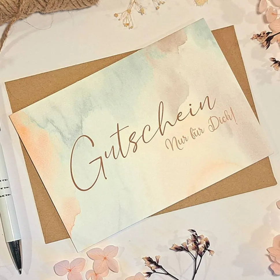 Sie erhalten eine wunderschöne Gutscheinkarte zum eigenen Beschriften.