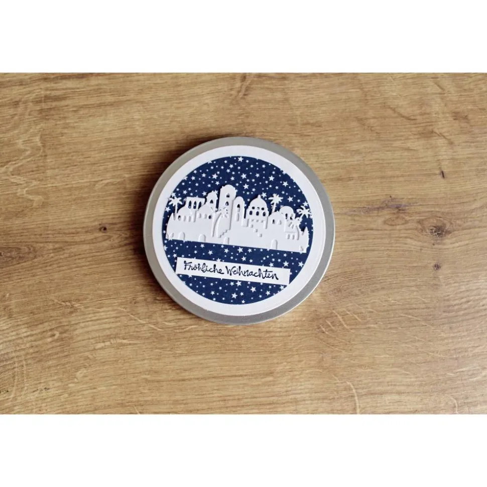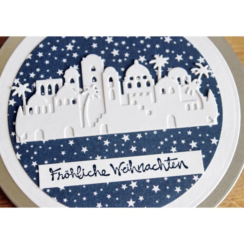Die Stadt Bethlehem in 3D-Optik vor dem dunklen Nachthimmel ist ein klassisches, aber durch die Darstellung doch auch modernes Design.