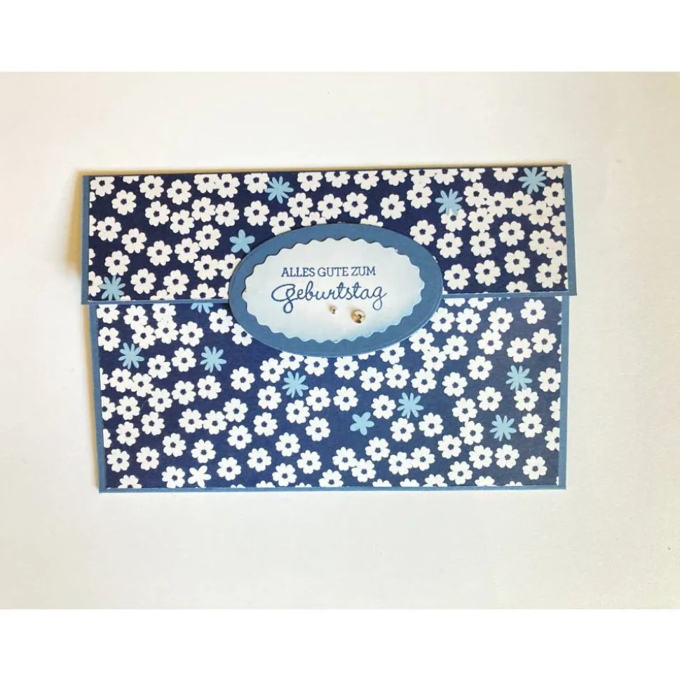 Dann ist diese handgearbeitete, liebevoll gestaltete Geldkarte vielleicht etwas für Sie. Wenn die Karte geöffnet wird, wird gleichzeitig ein Schiebefach geöffnet. In dieses Fach können Sie Geld legen. Die Karte wurde aus hochwertigen Materialien handgefertigt, mit Stempeln, Stanzen, Karton und Designpapier von Stampin’up!