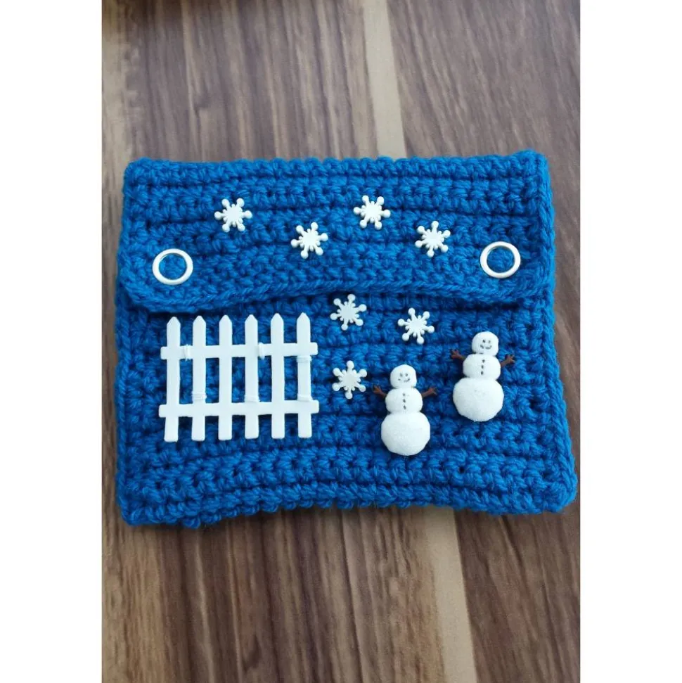 Sehr schönes Weihnachtsgeschenk ! Gutscheinkarten Täschchen Winter Ideale Verpackung für Gutscheinkarten, Geld, Schmuck oder andere Kleinigkeiten gehäkelt verziert mit Motiv-Knöpfen verschlossen mit Druckknöpfen