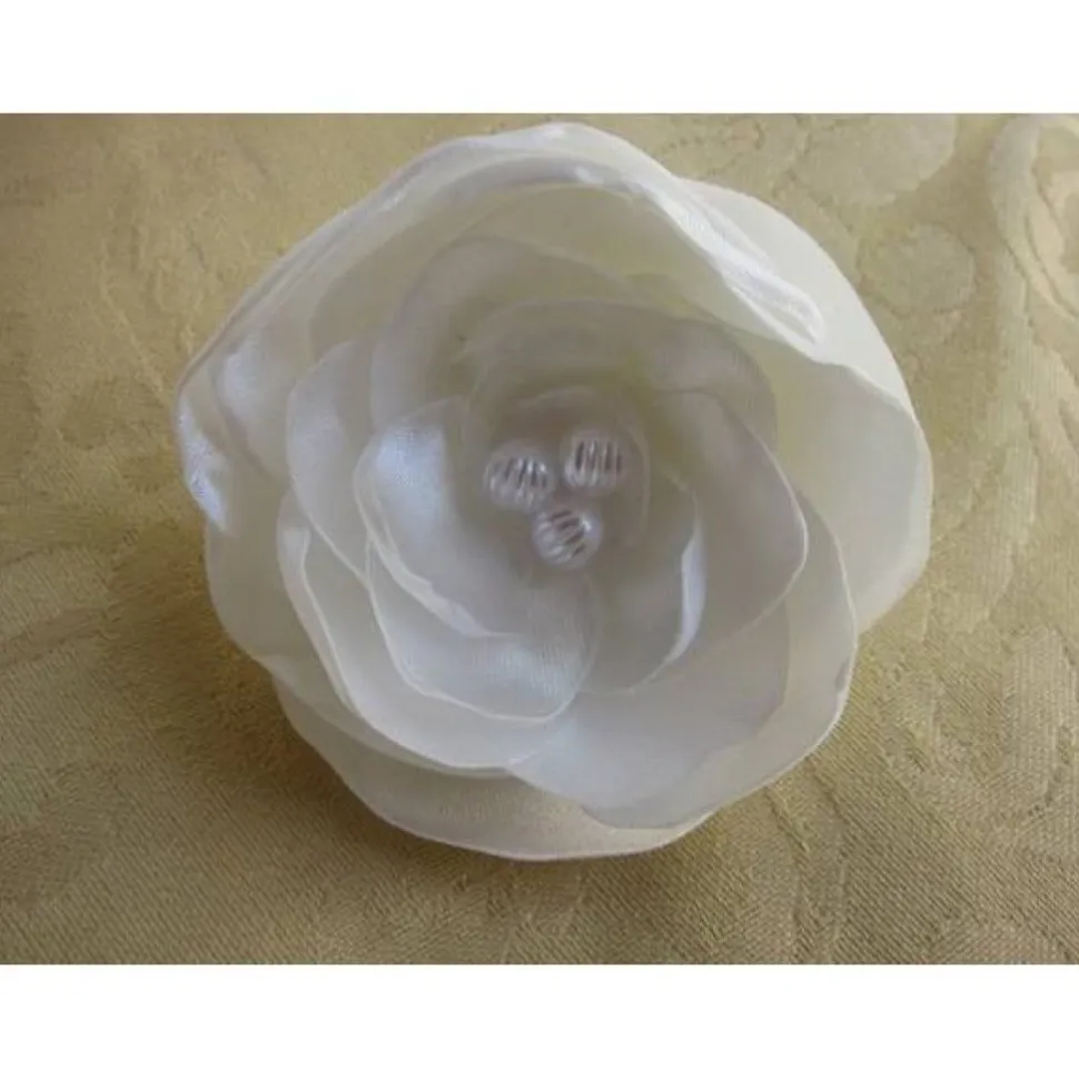 Verleihen Sie Ihrem Hochzeitslook mit dieser exquisiten weißen Textilbrosche und Haarklammer in Form einer zarten Blume den perfekten letzten Schliff. Hergestellt aus hochwertigem, sanftem Textilmaterial, strahlt diese Accessoire eine romantische Eleganz aus, die ideal für den schönsten Tag im Leben ist.