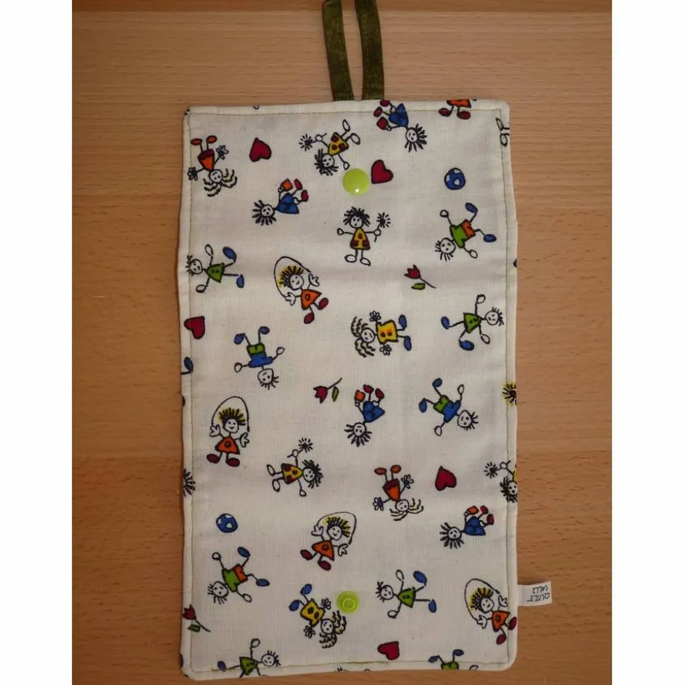Dieses Utensilo kann durch eine Schlaufe an der Wand aufgehängt werden. Zusammengeklapt ist es als kleines Täschchen ideal für unterwegs und kann in die Schule mitgenommen werden ebenso wie zum Übernachtungsbesuch bei der Freundin oder der Oma.
