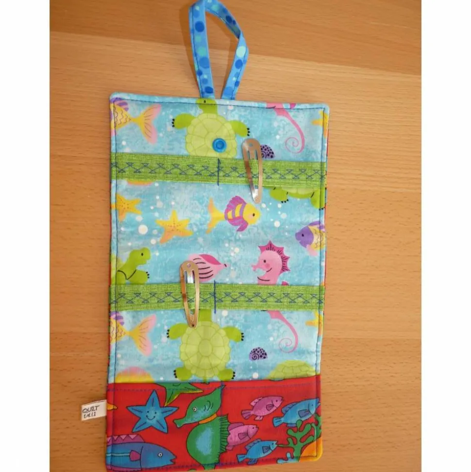 Dieses Utensilo kann durch eine Schlaufe an der Wand aufgehängt werden. Zusammengeklapt ist es als kleines Täschchen ideal für unterwegs und kann in die Schule mitgenommen werden ebenso wie zum Übernachtungsbesuch bei der Freundin oder der Oma.