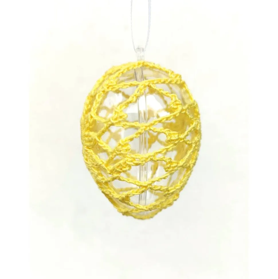 zauberhaftes, dekoratives Häkelei aus sonnengelbem Baumwollgarn. Mit einem Satinbändchen lässt sich das Ei an einen Osterstrauß, Kranz die Türklinke, Schrank oder ein kleines Geschenk anhängen. Ohne das Bändchen kann das Ei sich auch zwischen anderen Osterdekos verstecken. Bei diesem Angebot handelt es sich nur um das Ei auf dem ersten Foto!