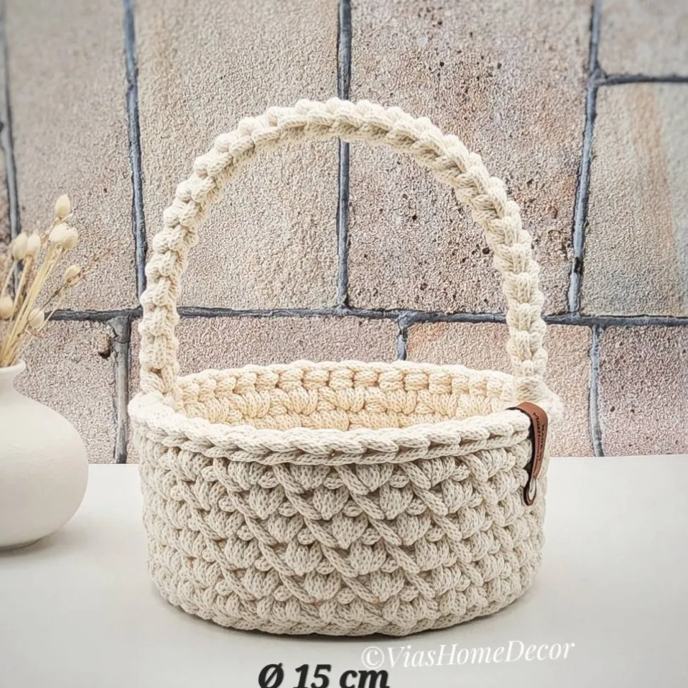 Häkelkorb mit Henkel und Holzboden in 3 Größen (Artikelnummer: K100):