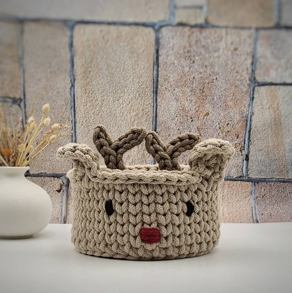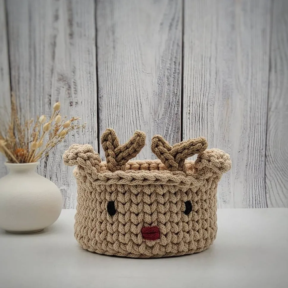 Jetzt den Häkelkorb mit Rentiergesicht bestellen – das perfekte Handmade-Highlight für Weihnachten und ein besonderes Geschenk!