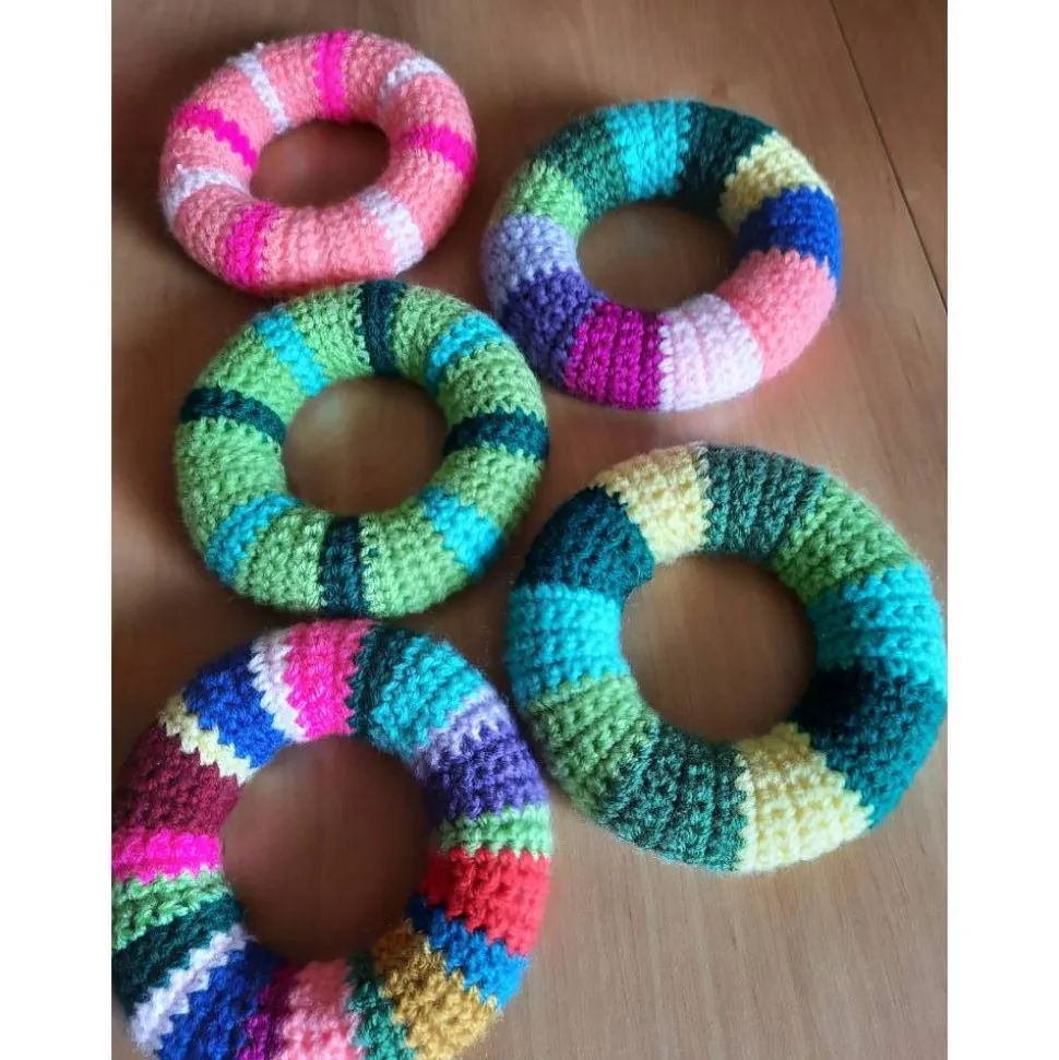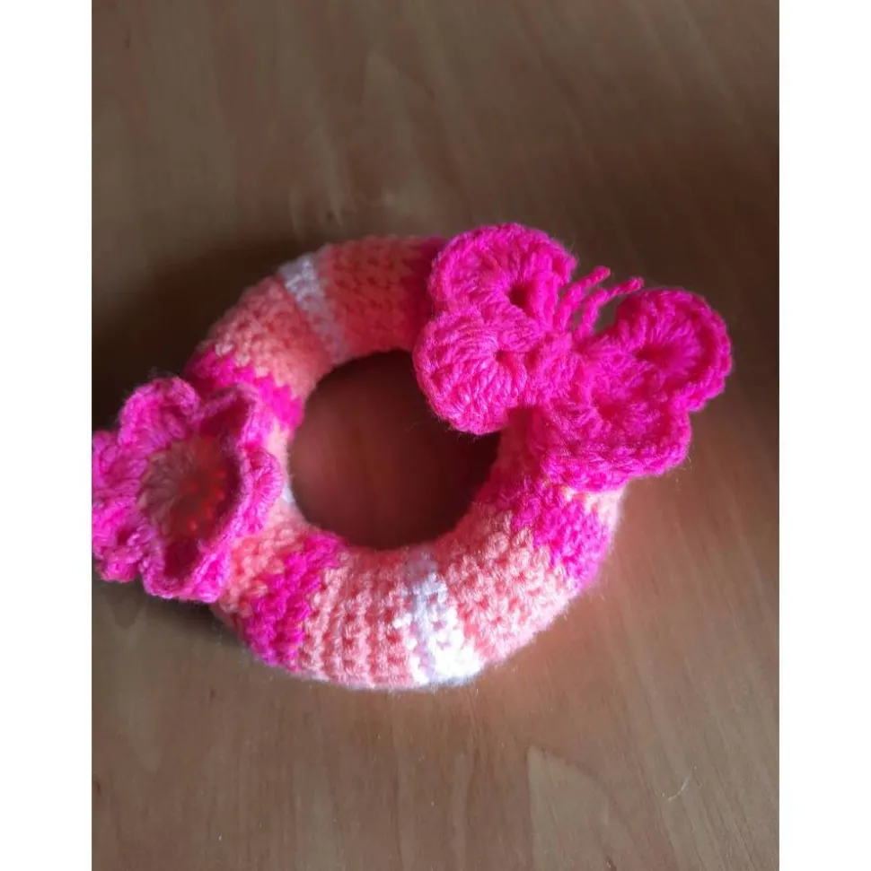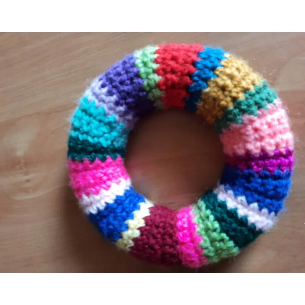 Ein Styroporkranz umhäkelt zum selber basteln. Der kranz ist mit bunter Wolle gemacht und man kann ihn selber nach eigenen Vorstellungen und je nach Jahreszeit bestücken. Der Durchmesser ist 12 cm aussen. Es sind verschiedene Farben. Preis gilt für einen. Bitte mir mitteilen welcher es sein darf.Die letzten Bilder sind als Beispiel mit gehäkelten Blüten oder Schmetterlingen, gehört nicht mit dazu.