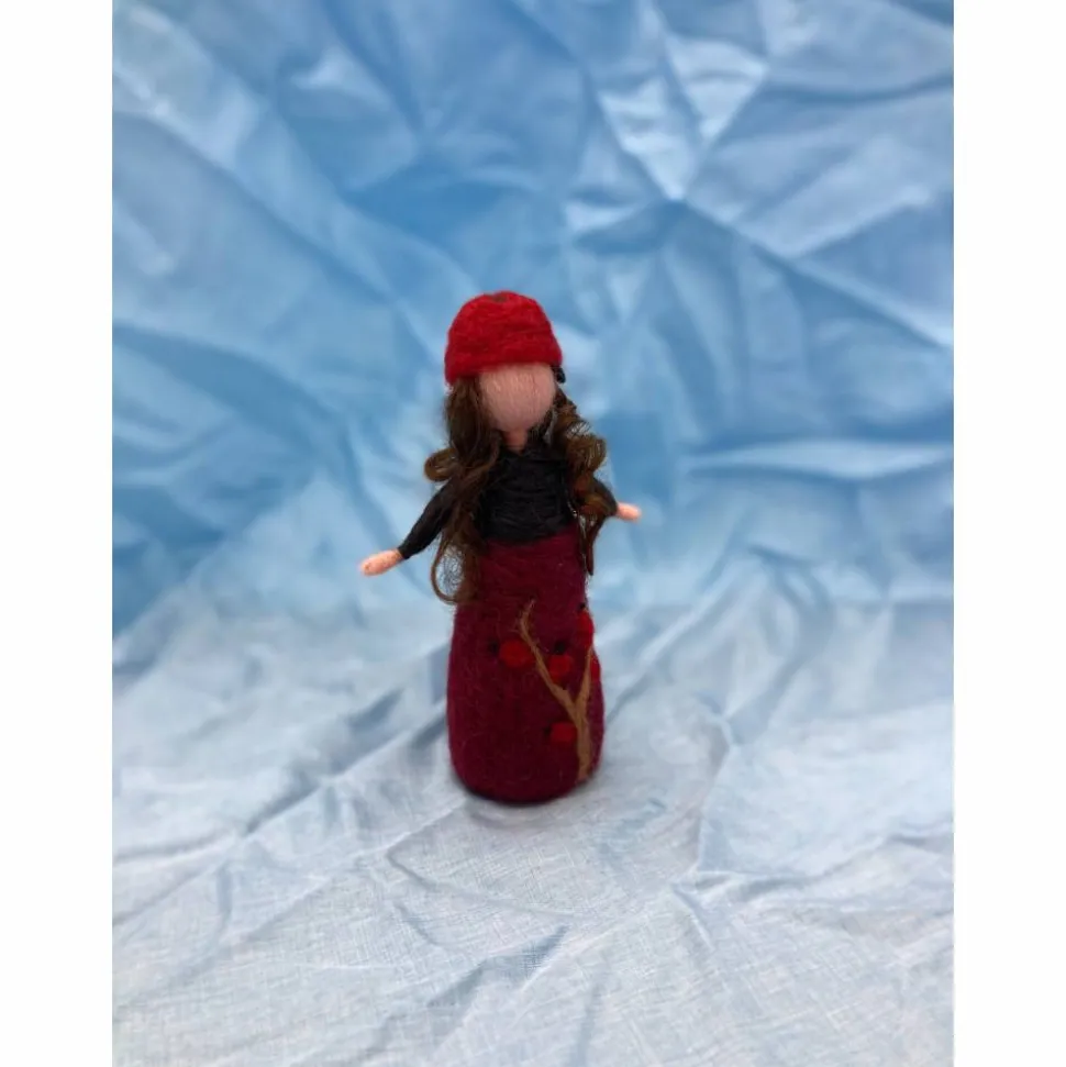 Das kleine Filzpüppchen ist 10 cm groß und wurde aus Merinowolle mit der Filznadel in Handarbeit angefertigt.
