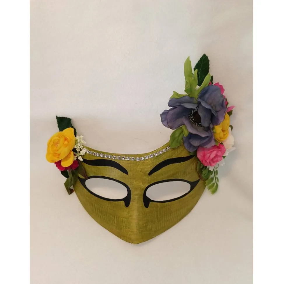 Diese liebevoll gestaltete Maske aus 100 % Pappmache ist das ideale Accessoire für Fasching, Karneval, Halloween oder deine nächste Kostümparty. Jede Maske wird von Hand mit 100 % Akrylfarbe bemalt,mit Strasssteinen und Kunstblumen und Blättern beklebt, und ist dadurch ein echtes Einzelstück. Die Befestigung erfolgt bequem mit einem elastischen Gummiband (60 % Polyestergarn, 30 % Naturkautschuklatex).