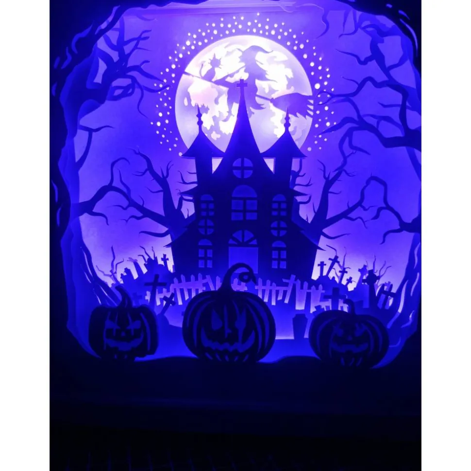 Das Motiv wurde aus zahlreichen Lagen stabilen Cardstock zusammengesetzt, die Led Beleuchtung wahlweise Farbwechsel oder einzelne Farben runden das Bild perfekt ab.