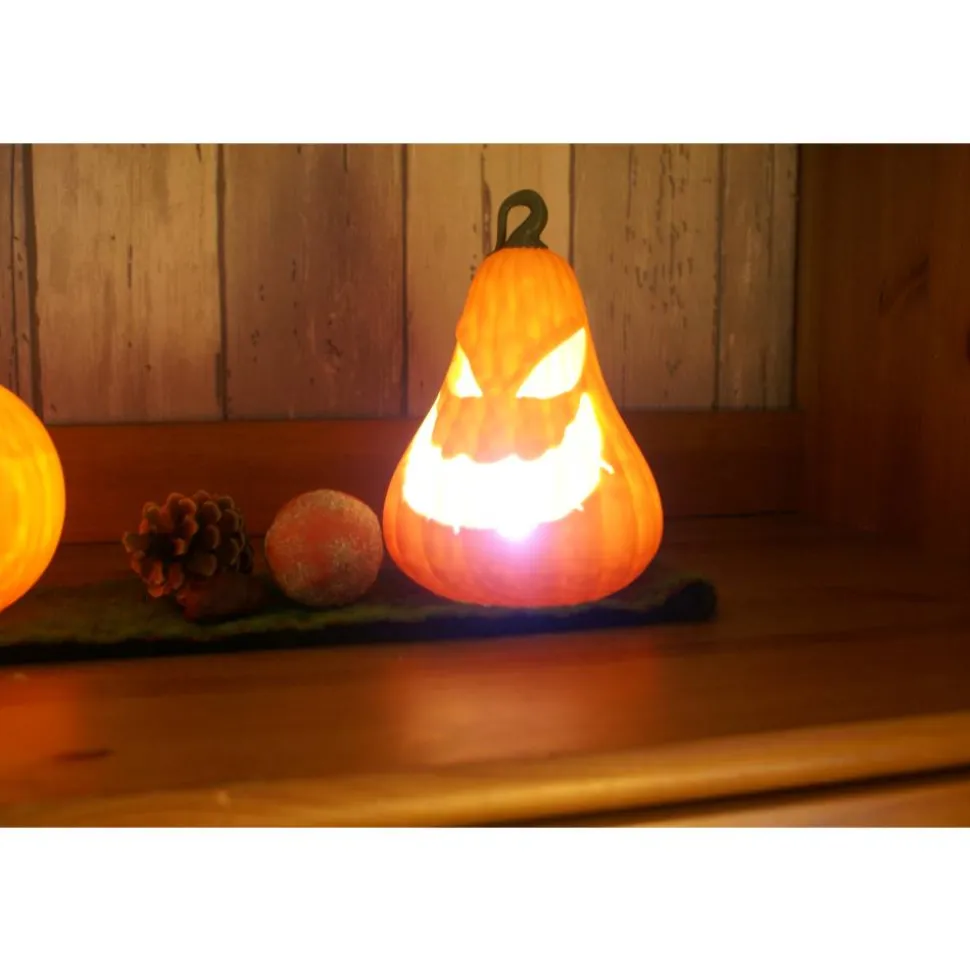 Die Kürbise werden mittels 3D Drucker hergestellt. Auf Grund von Lichteinfall kann die Farbe etwas abweichen genau wie durch das Material. Solltet Ihr sie mal sauber machen wollen dann einfach mit einem feuchten Tuch abreiben aber bitte nicht mit heißem Wasser reinigen.Bitte nur mit LED Kerzen benutzen.