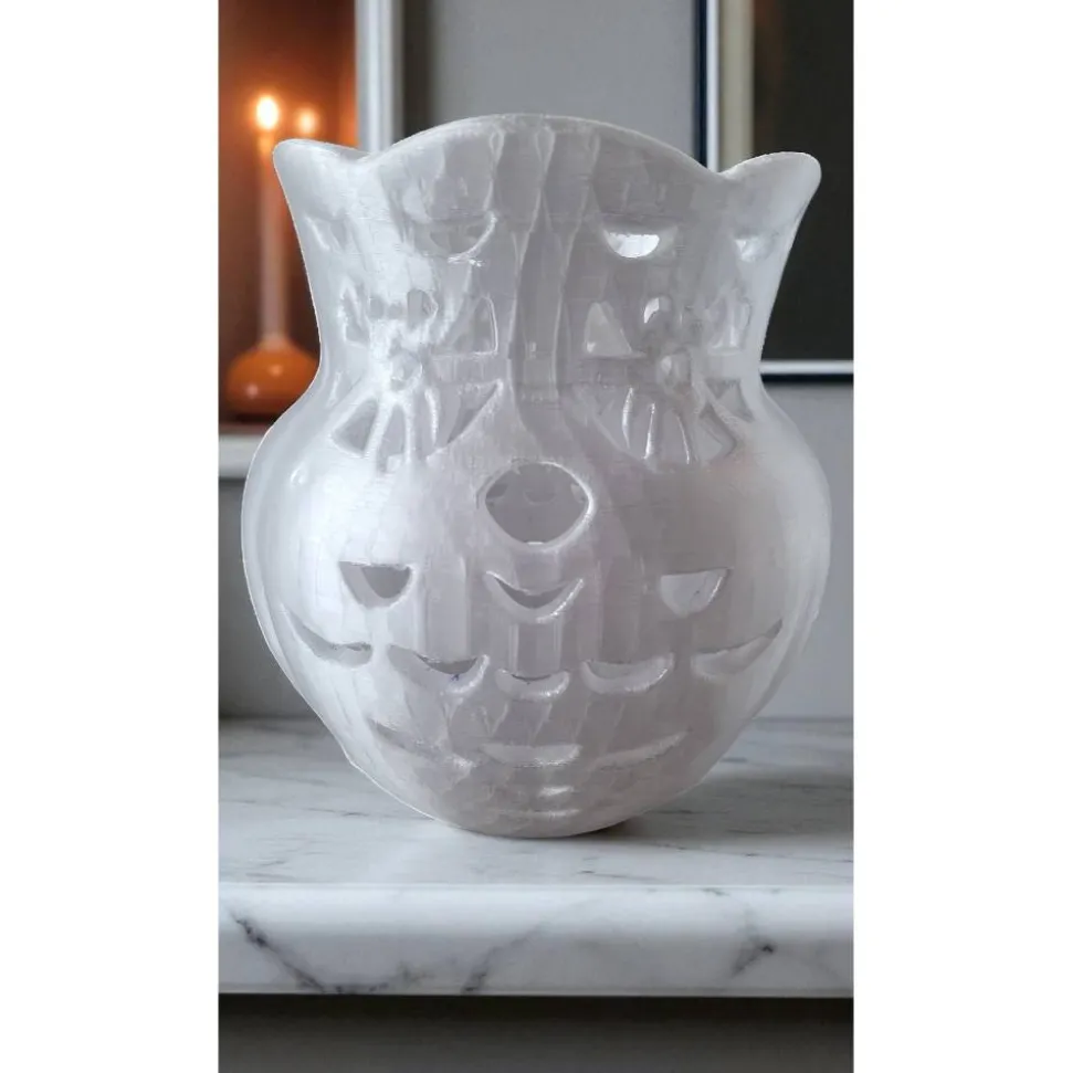 Dank der weißen, leicht durchscheinenden PLA-Oberfläche leuchten LED-Lichter besonders sanft und schaffen eine einzigartige, unheimliche Atmosphäre. Mit dem präzisen 3D-Druckverfahren wird jede Laterne Schicht für Schicht individuell und nachhaltig gefertigt – so erhältst du ein echtes Unikat.