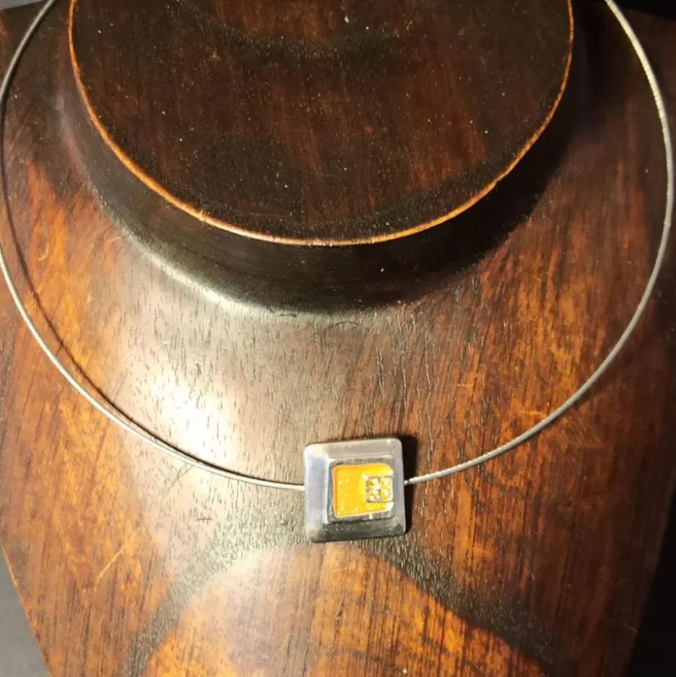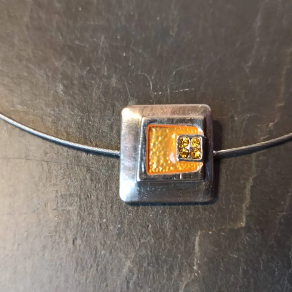 Anhänger mit Emailleauflage in orange und Strass
