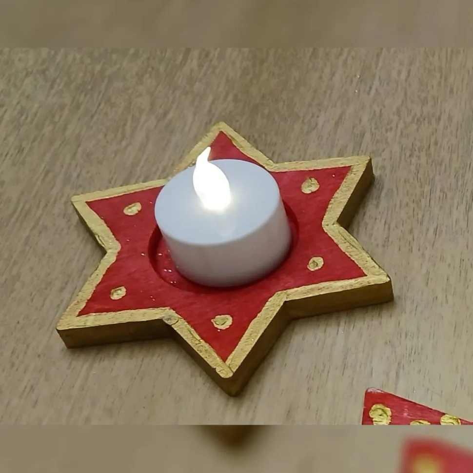 Dieses charmante, handbemalte Stern Windlicht im 3er Set bringt festlichen Glanz und eine Extraportion Gemütlichkeit in Ihr Zuhause. Mit ihrer liebevollen Gestaltung und den harmonisch abgestimmten Farben sind diese dekorativen Holz Windlichter die perfekte Ergänzung für Ihre Winter- und Weihnachtsdekoration.