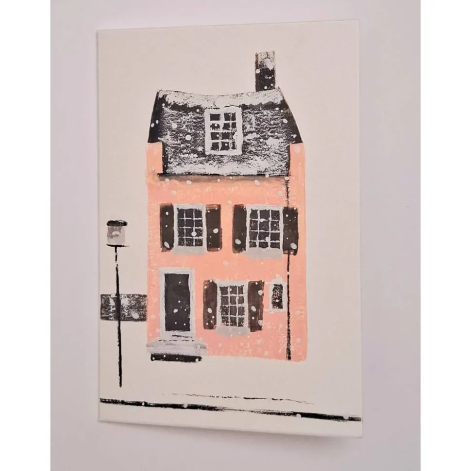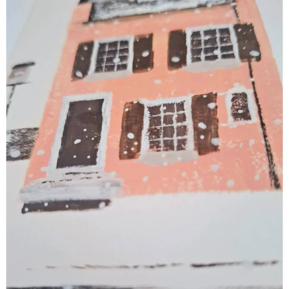 Diese besondere Doppelkarte zeigt ein charmantes Stadthaus im Schnee – liebevoll von Hand gemalt und in zarten Winterfarben gestaltet. Jede Karte ist ein kleines Kunstwerk und eignet sich perfekt als Weihnachtsgruß, Winterpost oder als dekoratives Mini-Kunstwerk zum Aufstellen oder Einrahmen.