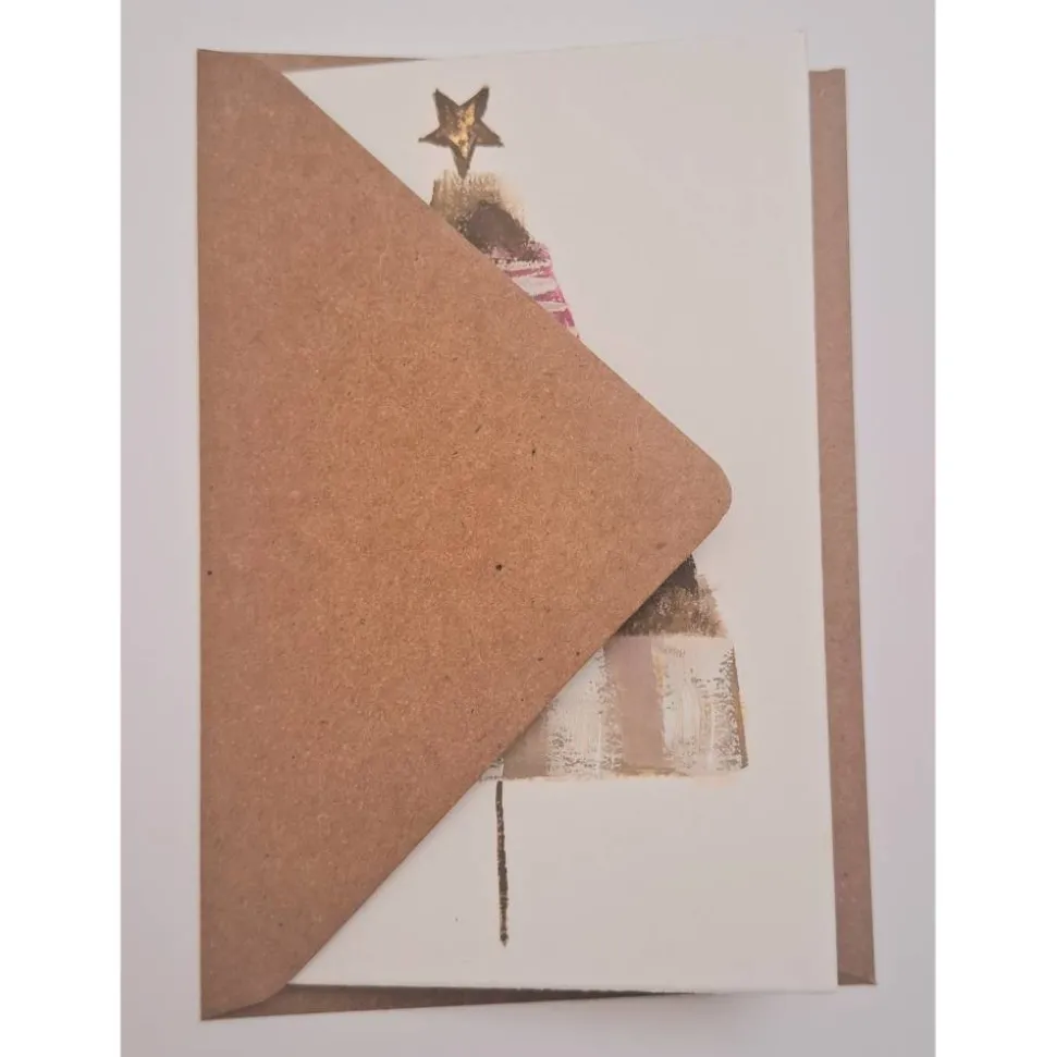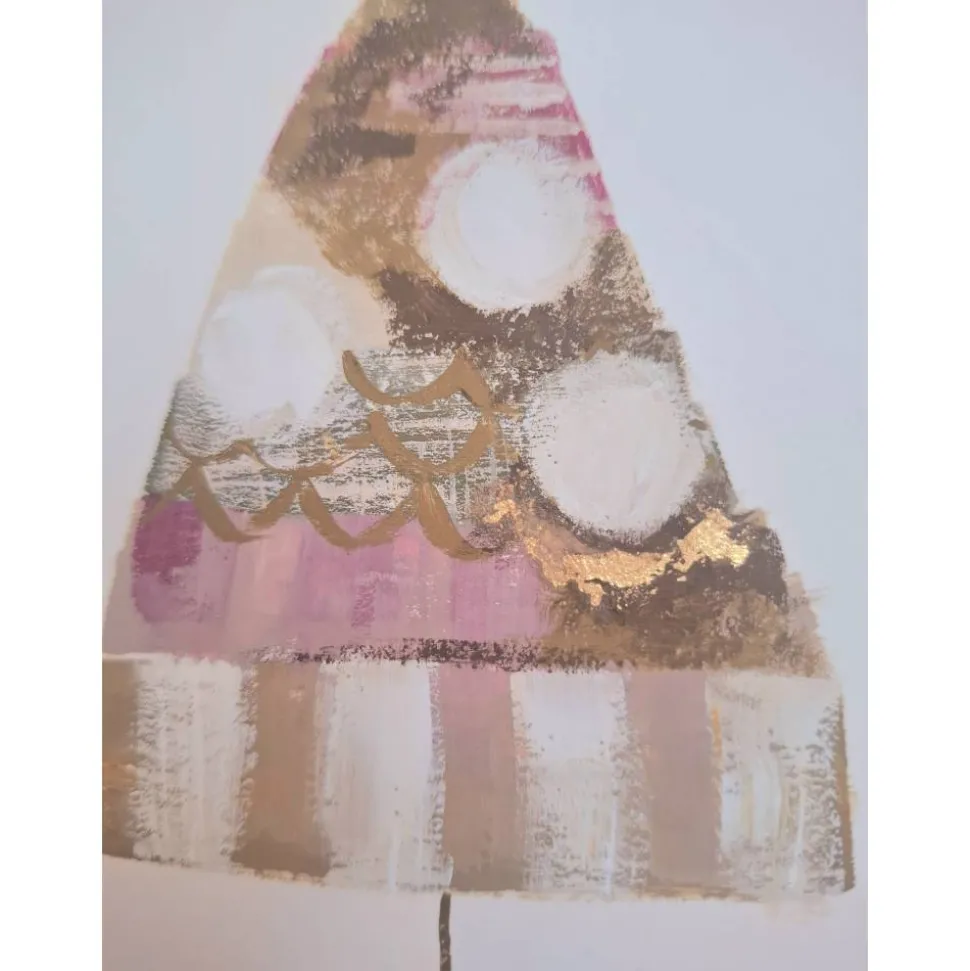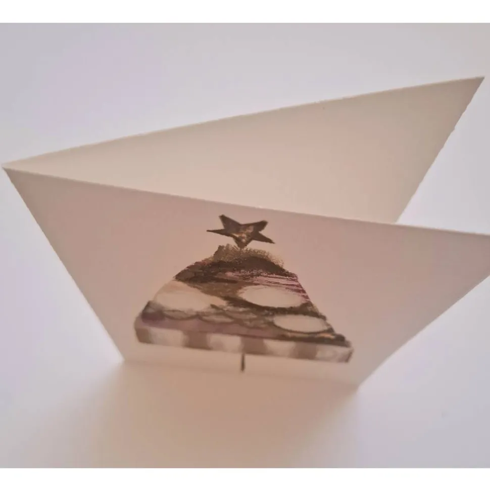 Diese besondere Doppelkarte wurde von Hand gestaltet und ist ein echtes Einzelstück. Der moderne Weihnachtsbaum in harmonischen Farbtönen wird durch feine Gold-Akzente veredelt und wirkt zugleich frisch und festlich.Ideal als besonderer Gruß, kleine Kunstkarte zum Verschenken oder zum Einrahmen.