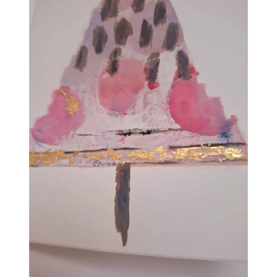 Diese besondere Doppelkarte wurde von Hand gestaltet und ist ein echtes Einzelstück. Der moderne Weihnachtsbaum in vibrierenden Farbtönen wird durch feine Gold-Akzente veredelt und wirkt zugleich frisch und festliche.Ideal als besonderer Gruß, kleine Kunstkarte zum Verschenken oder zum Einrahmen.
