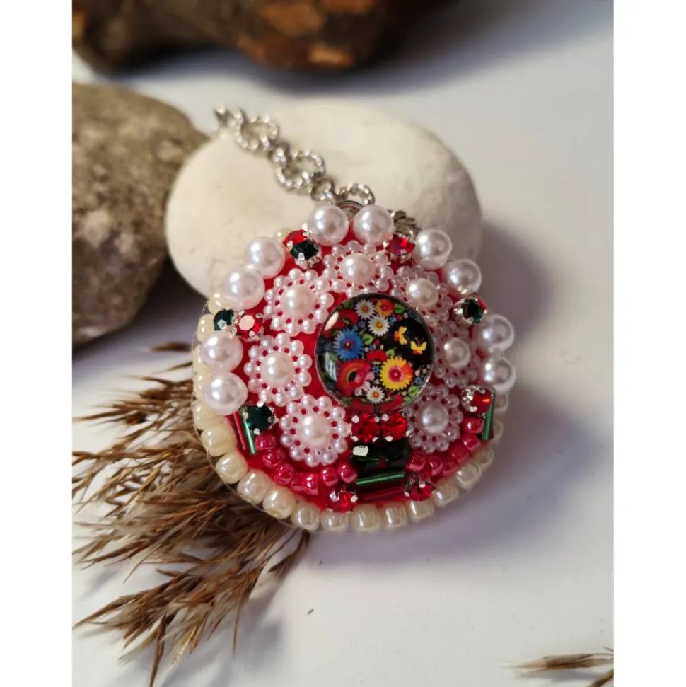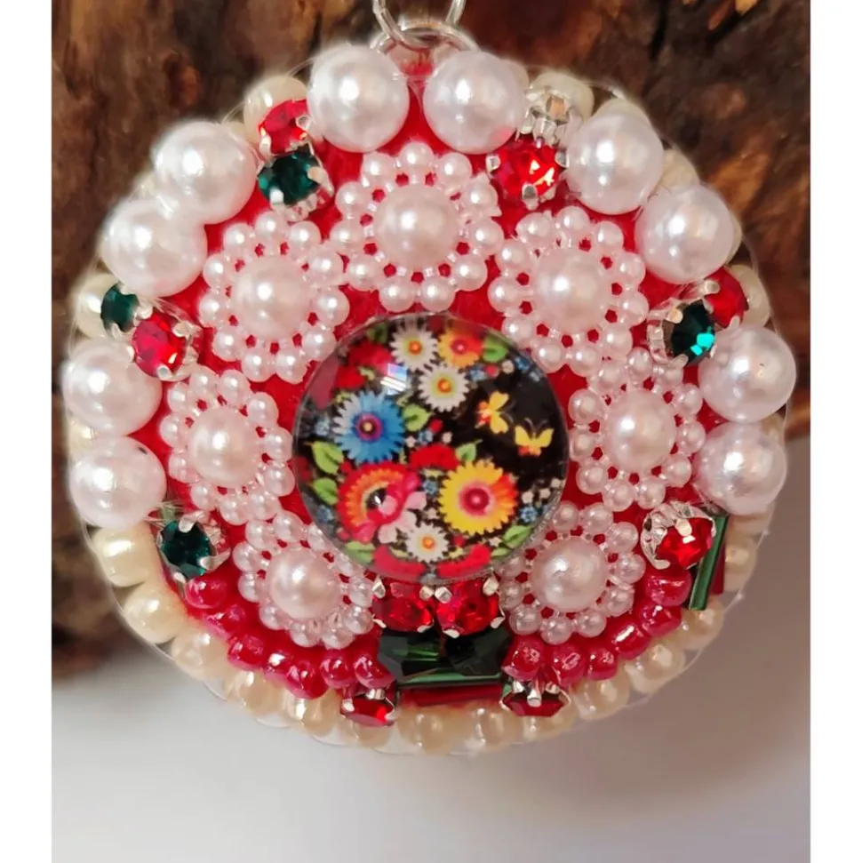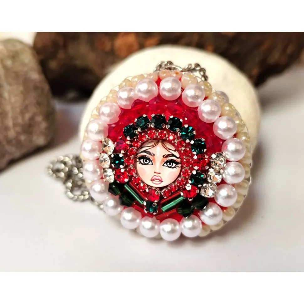 Dieser einzigartige handbestickte Matroschka Christbaumschmuck ist ein wunderschönes Dekorationsstück für die Weihnachtszeit und darüber hinaus. Mit einer Größe von 5 cm und einer 10 cm langen Kette zum Anhängen ist dieser doppelseitige Anhänger aus Rocailles und funkelnden Strasssteinen in den Farben Rot, Weiß und Grün ein echter Blickfang. Die liebevolle Handarbeit und die detailreiche Gestaltung machen ihn zu einem besonderen Highlight für Ihren Weihnachtsbaum oder als stilvolle Wohndeko. Ein ideales Geschenk für Liebhaber von traditionellem und handgefertigtem Schmuck!