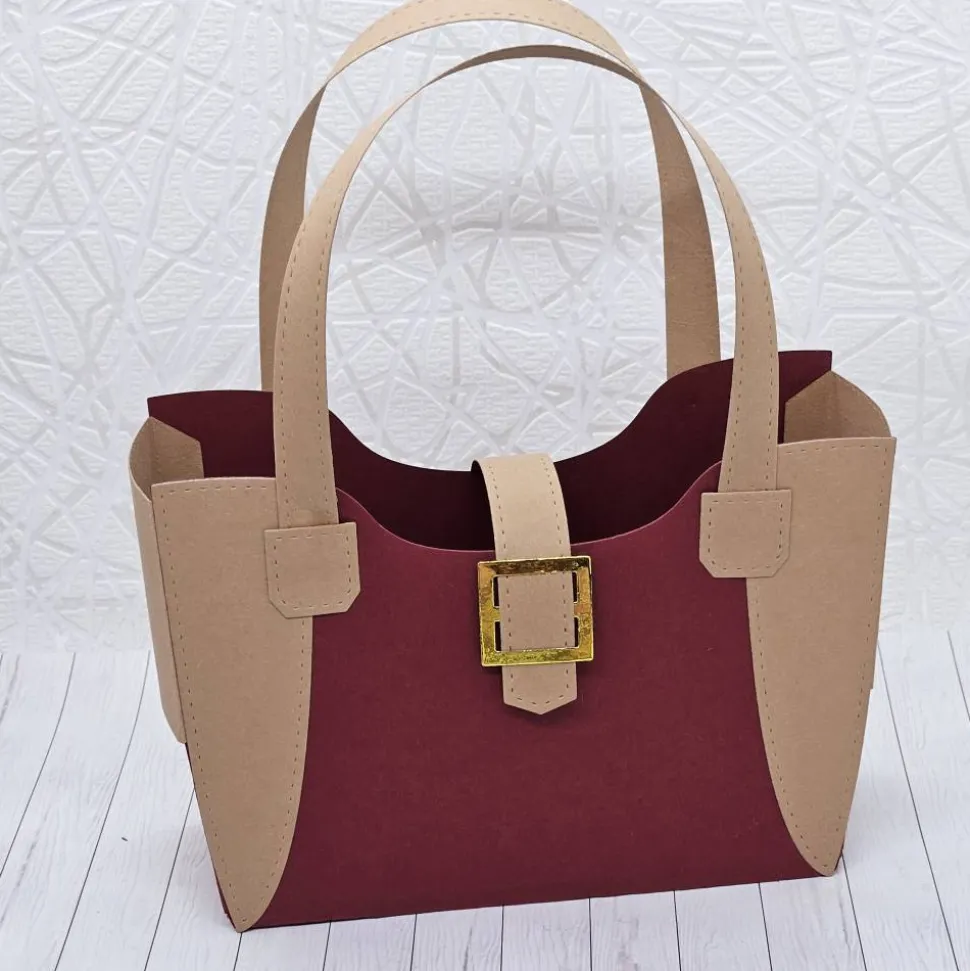 Diese liebevoll handgefertigte Geschenkverpackung in Taschenform ist nicht nur eine stilvolle Art, kleine Aufmerksamkeiten zu verschenken, sondern selbst ein echter Blickfang. Gefertigt aus hochwertigem 300 g/m² Fotokarton, überzeugt sie durch ihre stabile Form, klare Linien und detailverliebte Verarbeitung. Die harmonische Farbkombination aus Bordeauxrot und Beige wird durch eine elegante, goldene Schnalle veredelt, die der Box eine edle, fast lederähnliche Optik verleiht.
