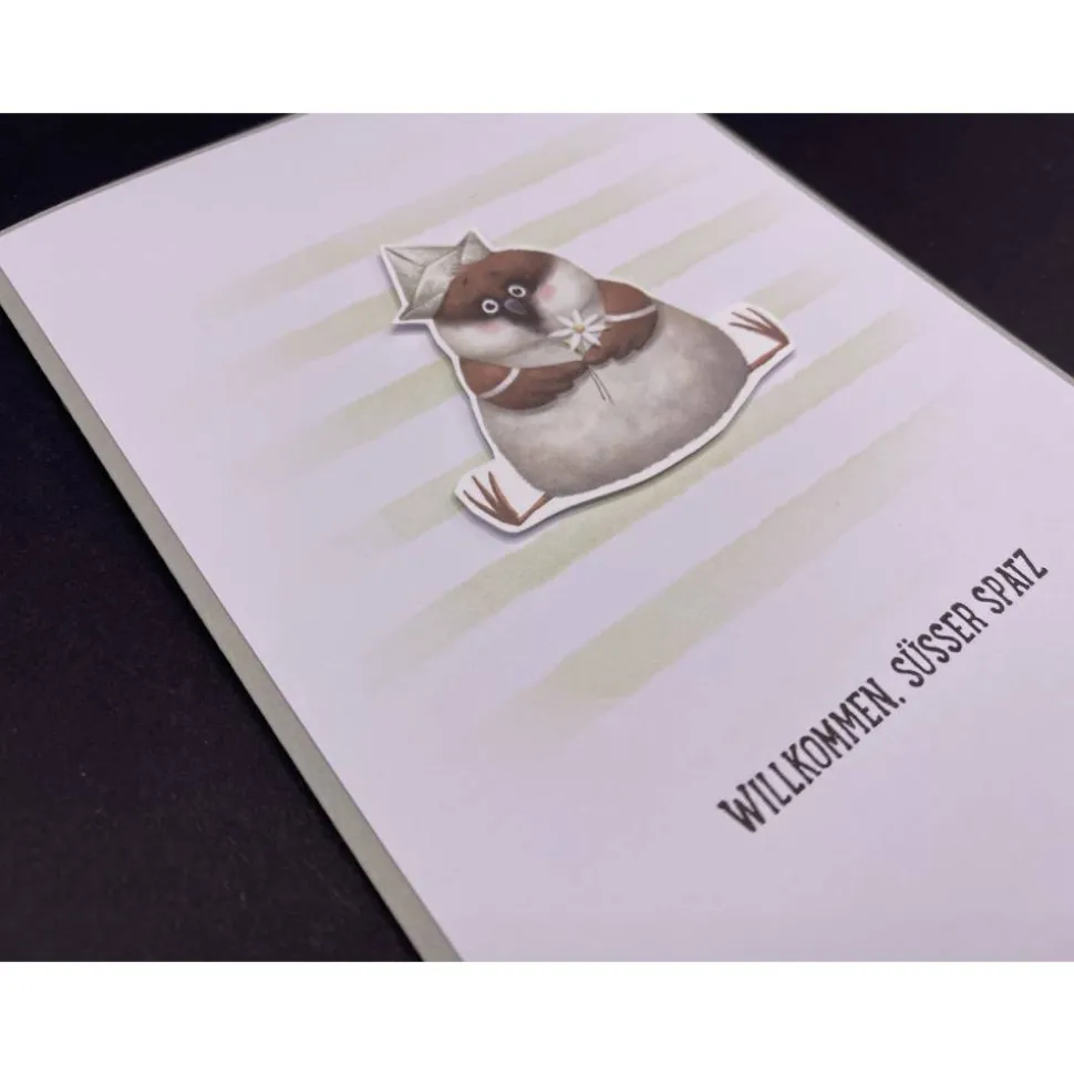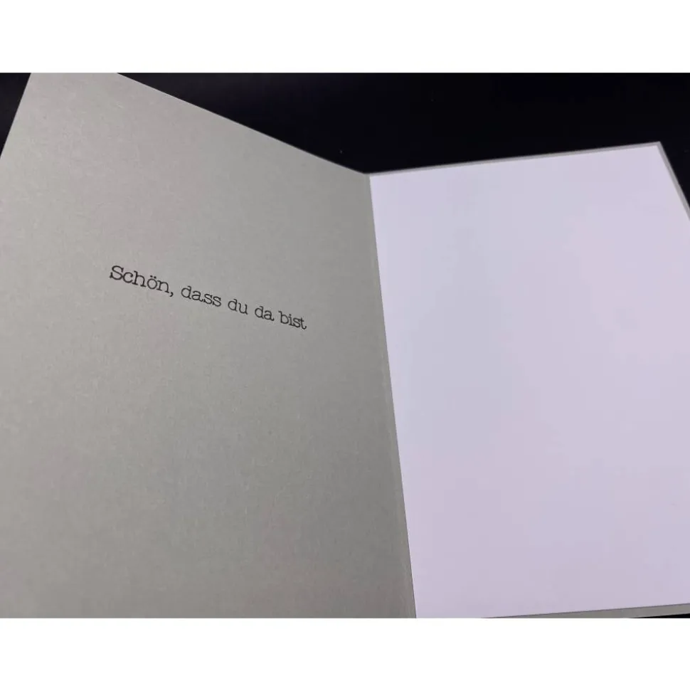 Innen ist auf der linken Seite ein Spruch gestempelt („Schön, dass du da bist“). Rechts habt ihr ausreichend Platz für eure Glückwünsche.