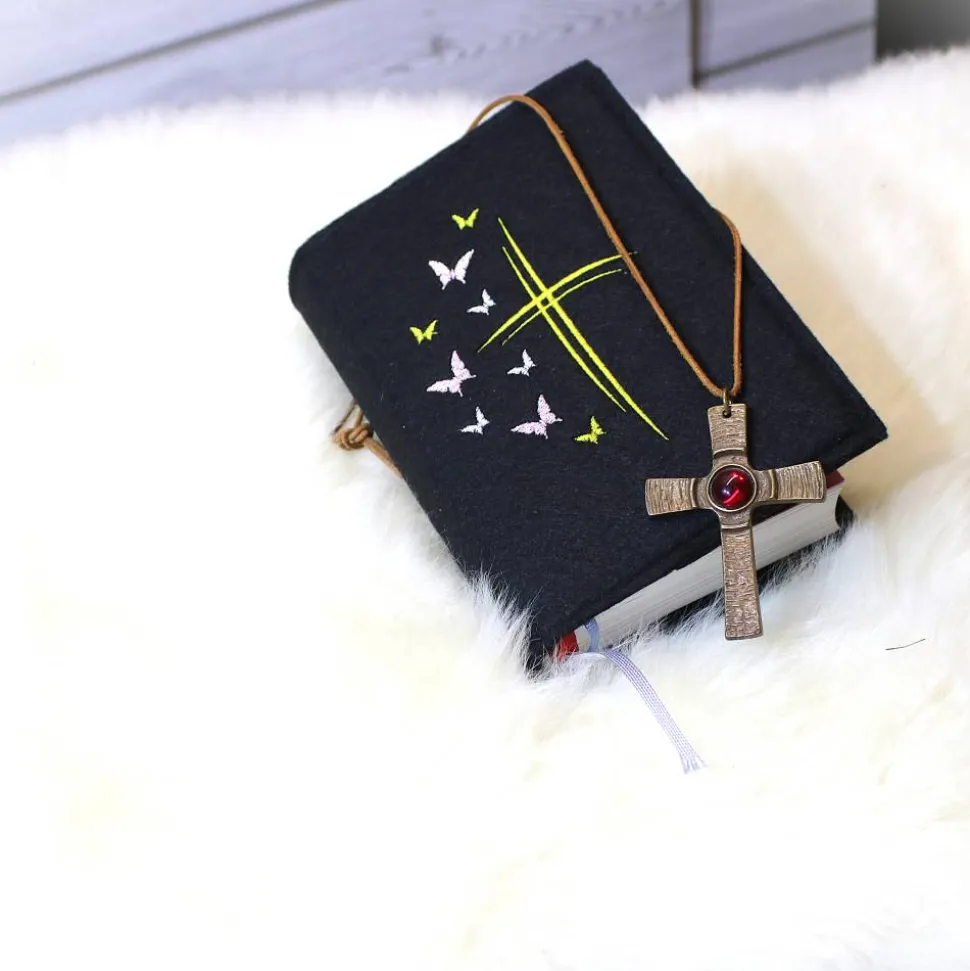 Jede Hülle wird mit Sorgfalt aus hochwertigem Textilfilz gefertigt, feine Stickerei und individuelle Designs verleihen ihr eine besondere Note. Ob mit dezenten christlichen Symbolen oder mit kindlichen Verzierungen, jede Gotteslobhülle ist ein Unikat.