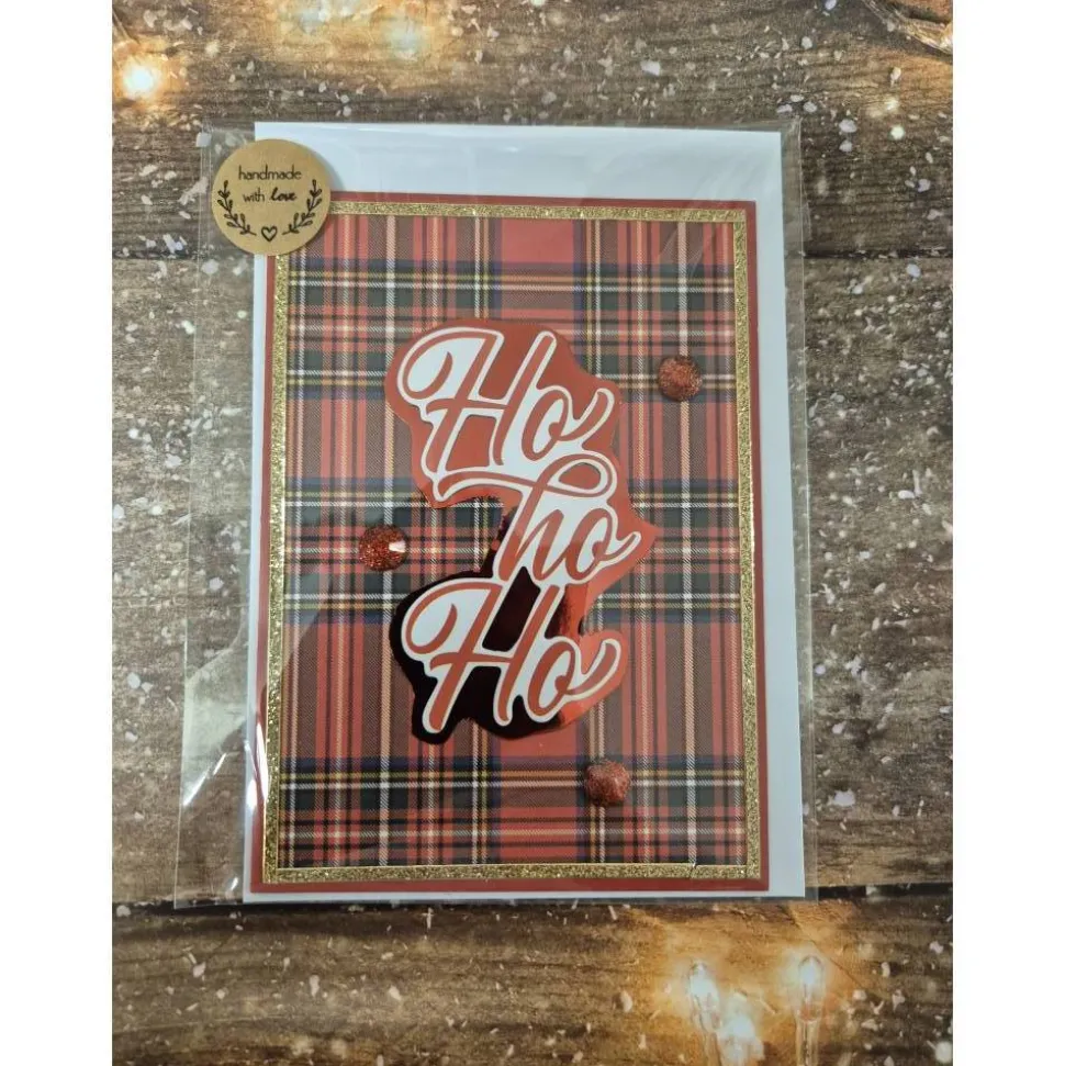 Ob für Freunde, Familie oder Kollegen – diese handgefertigte Weihnachtskarte mit dem Spruch HoHoHo ist das ideale Accessoire für deine festlichen Grüße!