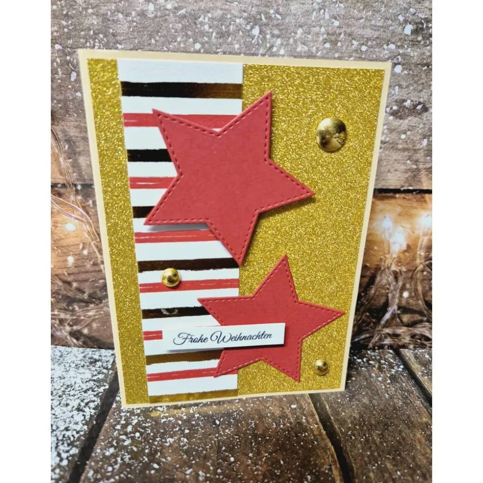 Ob für Freunde, Familie oder Kollegen – diese handgefertigte Weihnachtskarte mit roten Sterne ist das ideale Accessoire für deine festlichen Grüße!