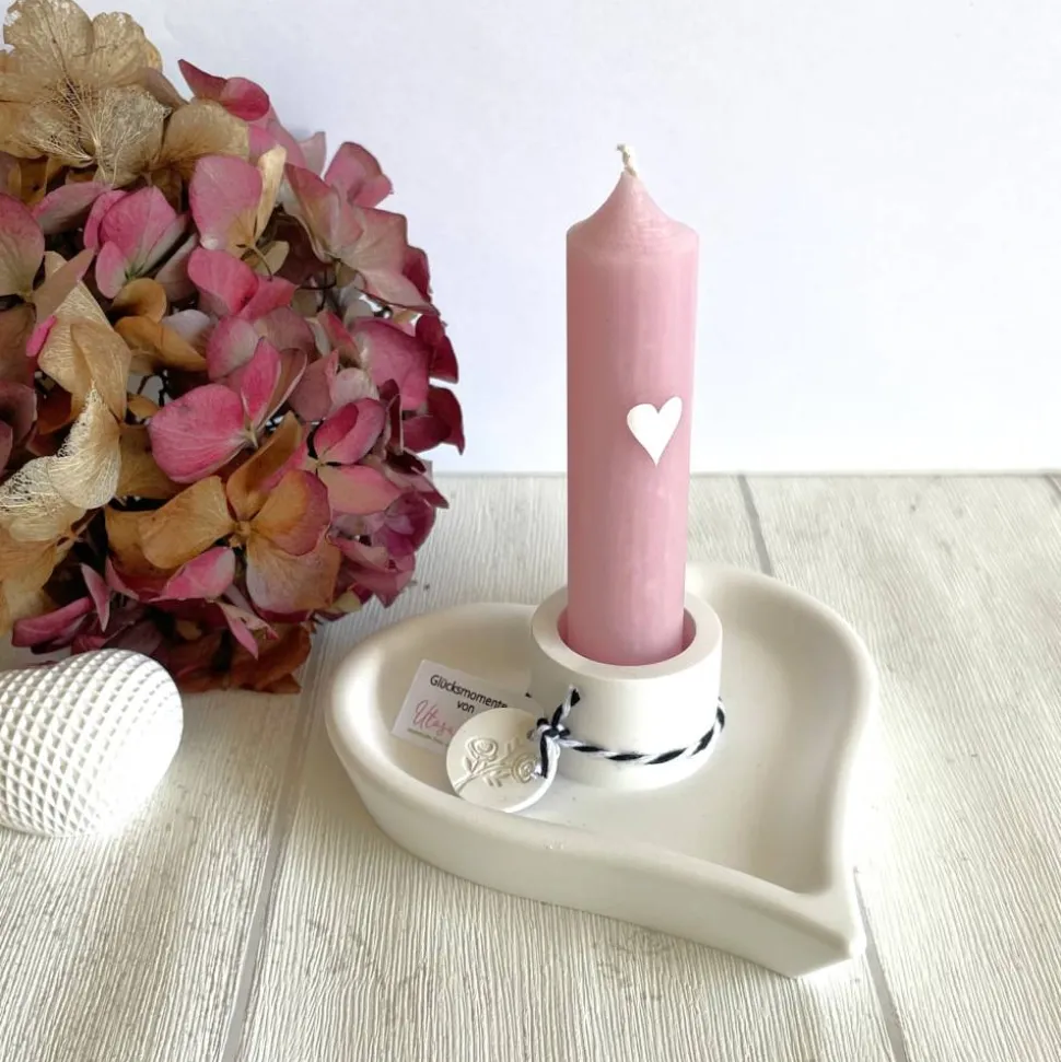 Entdecke ein einzigartiges Geschenkset: Der handgefertigte Kerzenständer in Herzform ist ein liebevolles Highlight für Dein Zuhause und eignet sich ideal als kleine Aufmerksamkeit zum Valentinstag, Muttertag, Geburtstag oder als Dankeschön für die beste Freundin.