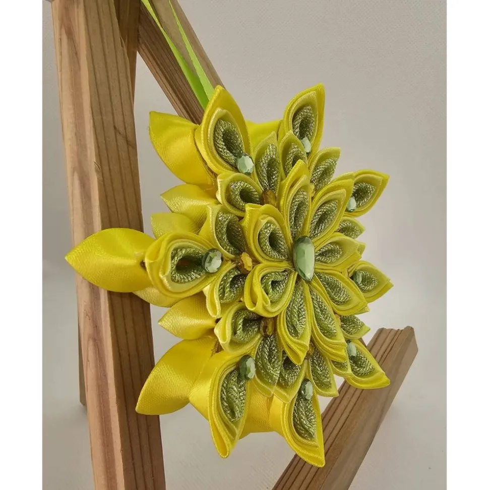 Material: Satinband, Brokatband, Strasssteinchen
