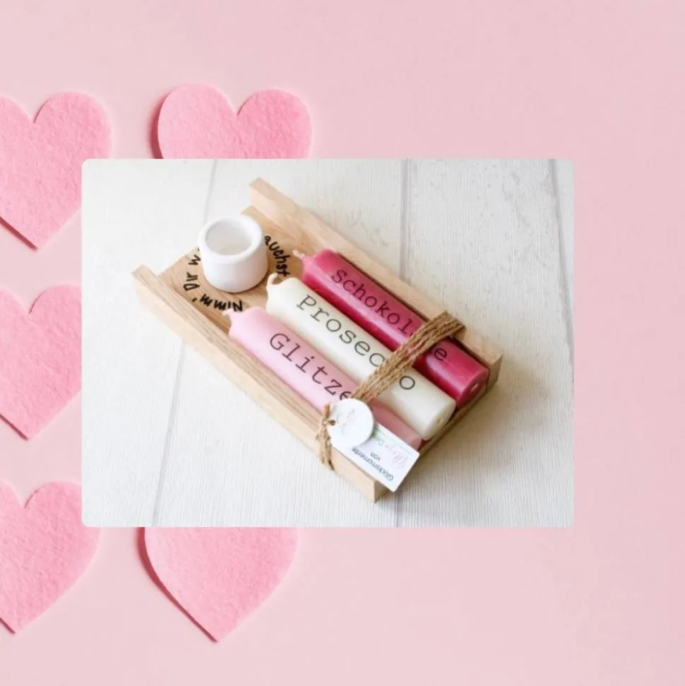Entdecke ein liebevoll handgefertigtes Geschenkset mit drei Kerzen und einem Kerzenständer in Weiß – perfekt als kleine Aufmerksamkeit oder als Gastgeschenk für viele Anlässe wie Valentinstag, Geburtstag oder als Dankeschön für Deine beste Freundin.