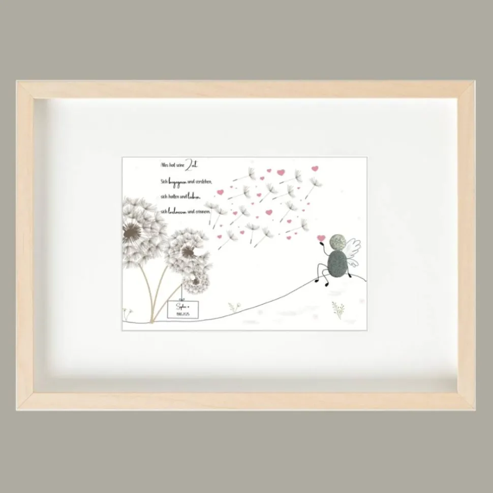Handgefertigtes Steinbild „Alles hat seine Zeit“ – ein einzigartiges und einfühlsames Geschenk, das in Zeiten der Trauer Trost spendet und Erinnerungen bewahrt. Mit diesem besonderen Kunstwerk zeigst du Mitgefühl, wenn Worte fehlen. Jedes Bild wird individuell nach deiner Bestellung angefertigt und ist ein echtes Unikat, da ich mit Naturmaterialien arbeite. Dadurch kann es zu leichten Abweichungen in Form, Farbe und Struktur kommen – jedes Stück bleibt einzigartig.