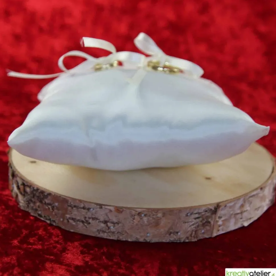 Das handgearbeitete Kissen, gefüllt mit weicher Füllwatte, misst 16 x 17 cm – eine perfekte Größe, um Ihre Ringe elegant zu präsentieren. Die Verwendung von hochwertigem Taftstoff verleiht dem Kissen einen luxuriösen Glanz, der bei jeder Bewegung das Licht einfängt und reflektiert. Es ist ein Symbol für die Eleganz und den Glanz, die Ihre Liebe verdient.