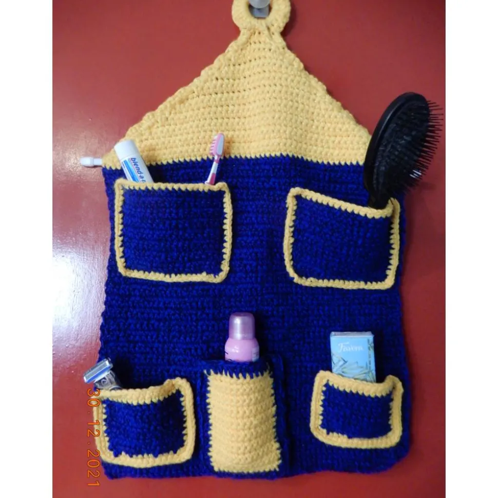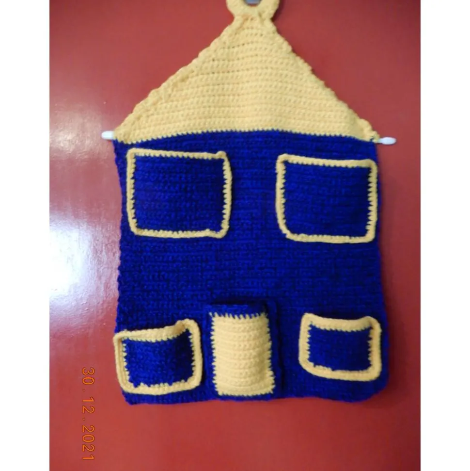 Ich habe ihn in Form eines Hauses gehäkelt,