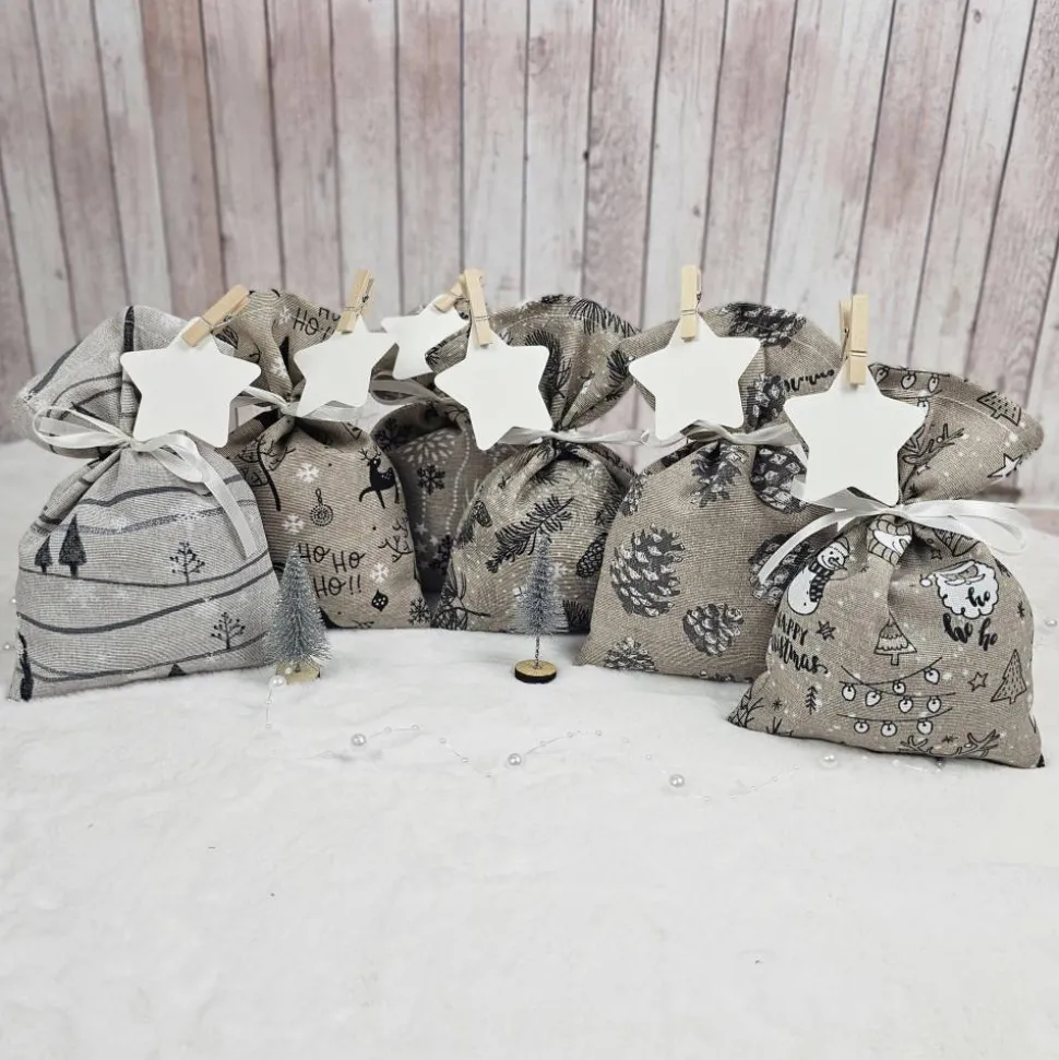 Handgemachte Adventskalendersäckchen aus Stoff – 24 wiederverwendbare Säckchen zum Befüllen