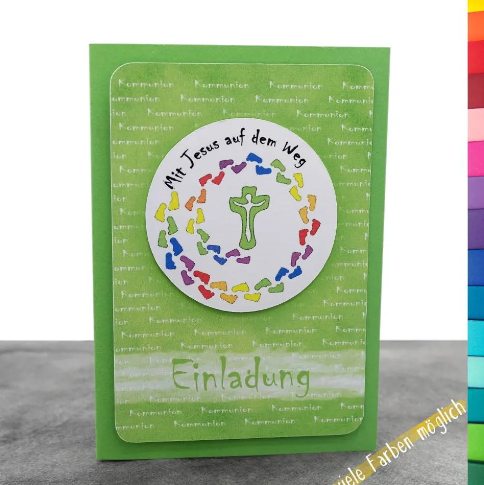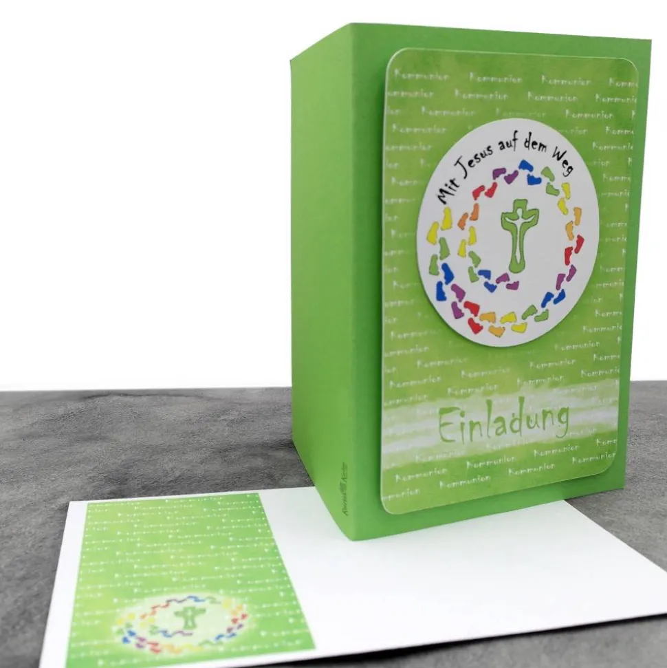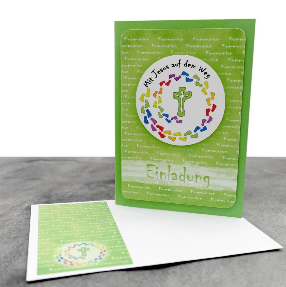 Handgemachte Einladungskarte Kommunion – Mit Jesus auf dem Weg