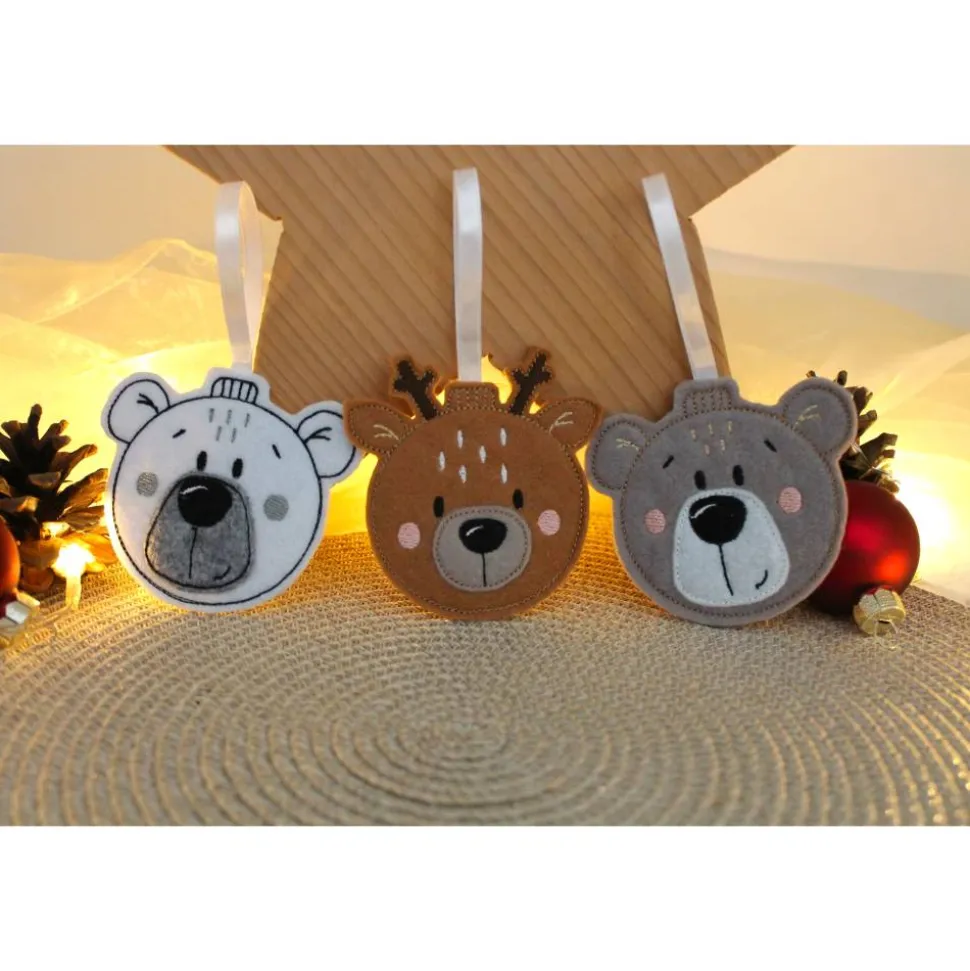 Erhältlich als Eisbär-Kopf, Bär-Kopf oder Reh-Kopf in süßer Christbaumkugelform, sind sie das perfekte Accessoire für alle, die Handarbeit und detailreiche Weihnachtsdeko lieben.