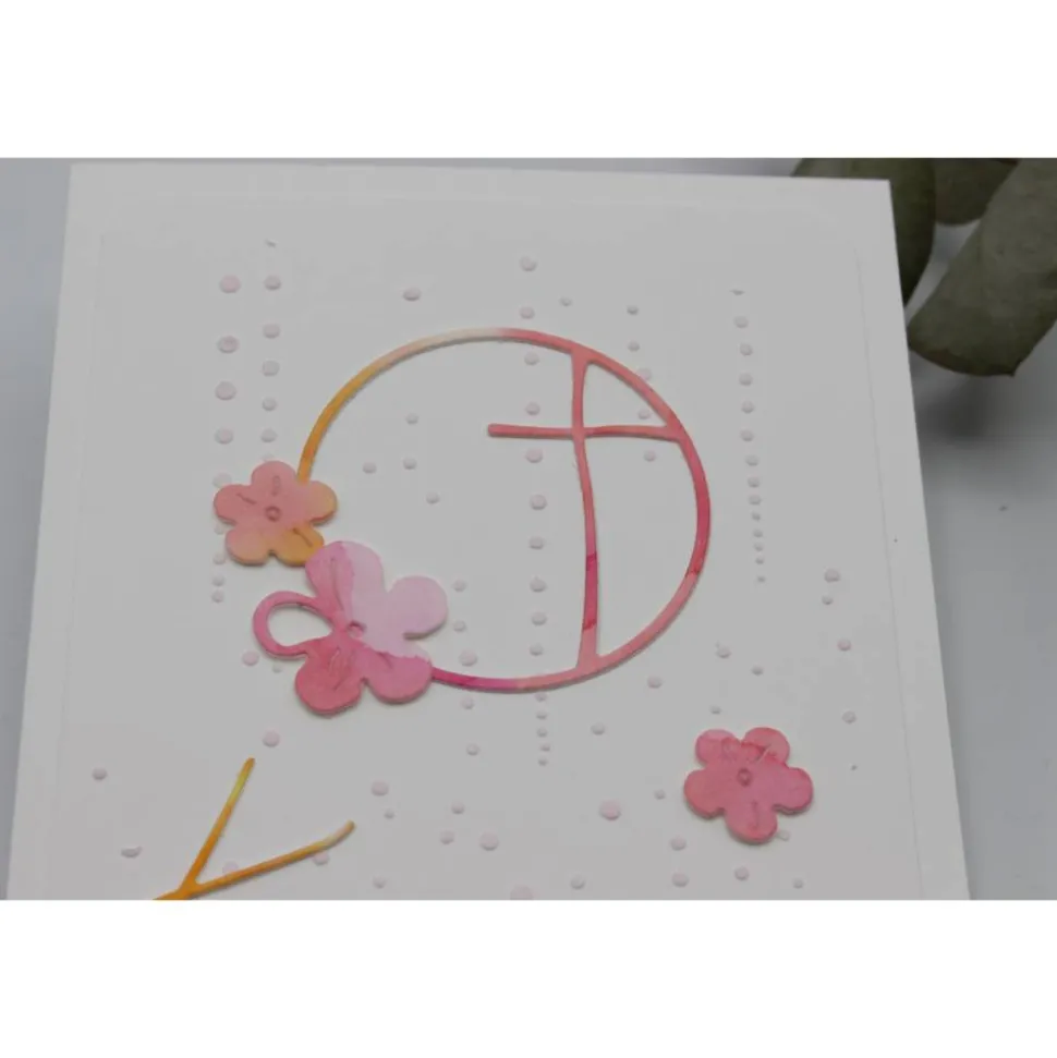 Die Karte wurde mit viel Liebe zum Detail von Hand gefertigt und überzeugt durch hochwertige Materialien sowie ein stilvolles, zeitloses Design – ein Kreuz, umrahmt von zarten Blüten auf besonderem Hintergrund.